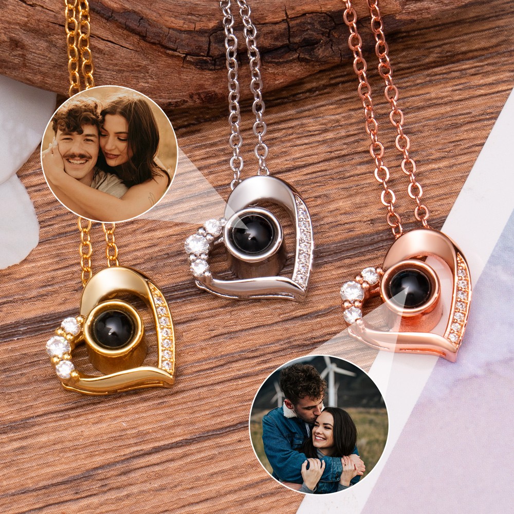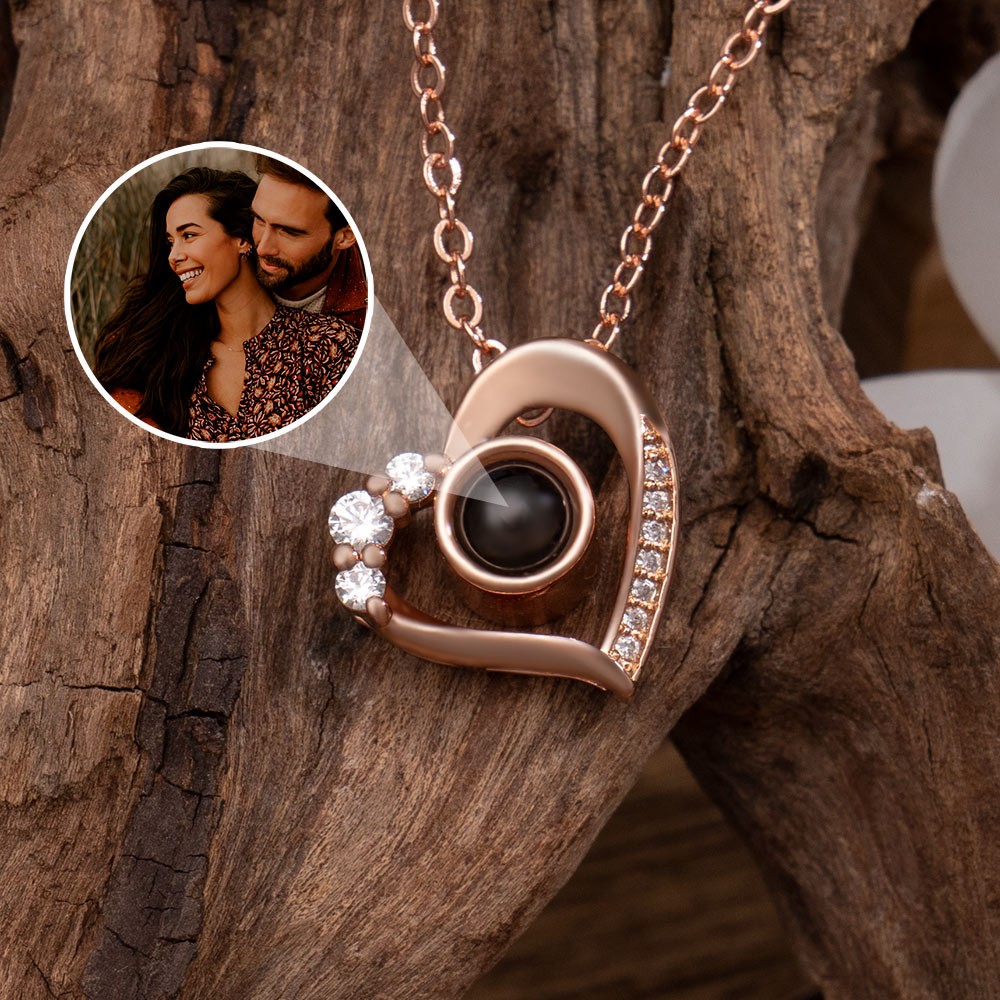 Collana personalizzata per proiezione di foto a forma di cuore con immagine all'interno. Regalo d'amore per coppia. Regalo unico per lei
