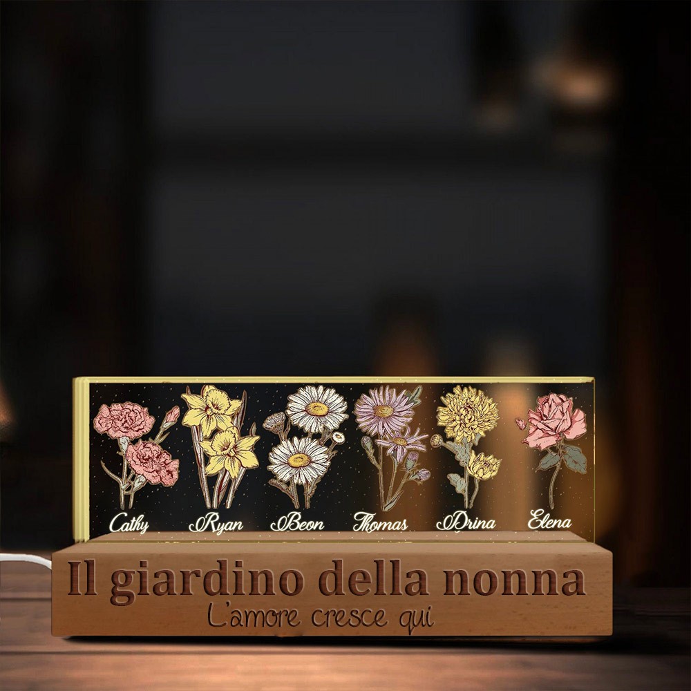 Luce notturna personalizzata per la nascita del giardino della nonna, fiori, legno, regali unici per la mamma, nonna, idee regalo per la festa della mamma