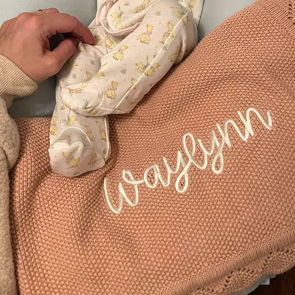 Coperta ricamata personalizzata con nome per neonato, coperta lavorata a maglia, regalo ricordo per bambina, regalo di Natale