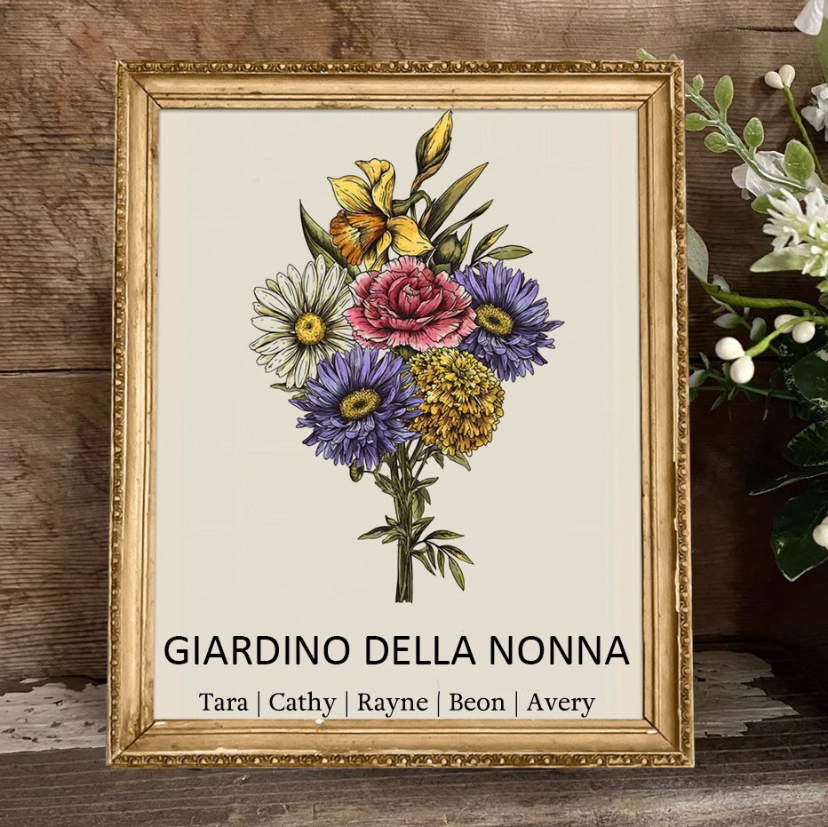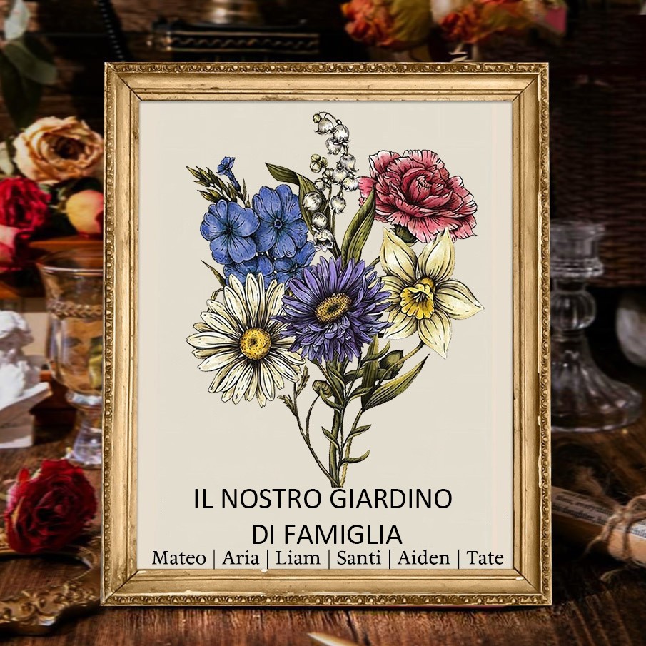 Cornice Bouquet di Fiori di Nascita Personalizzata per il Giardino della Mamma con Nomi dei Bambini – Regali Famiglia Personalizzati per Mamma, Nonna, Regalo di Compleanno, Idee Regalo di Natale