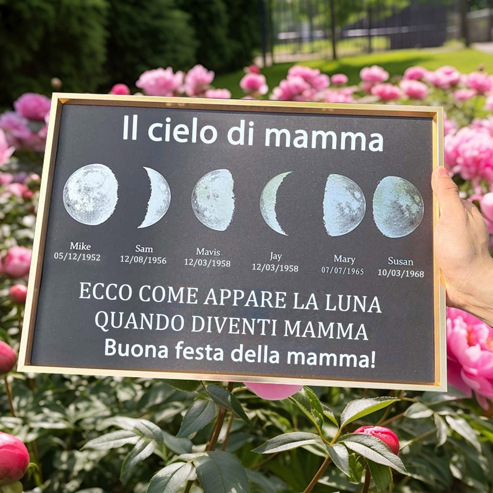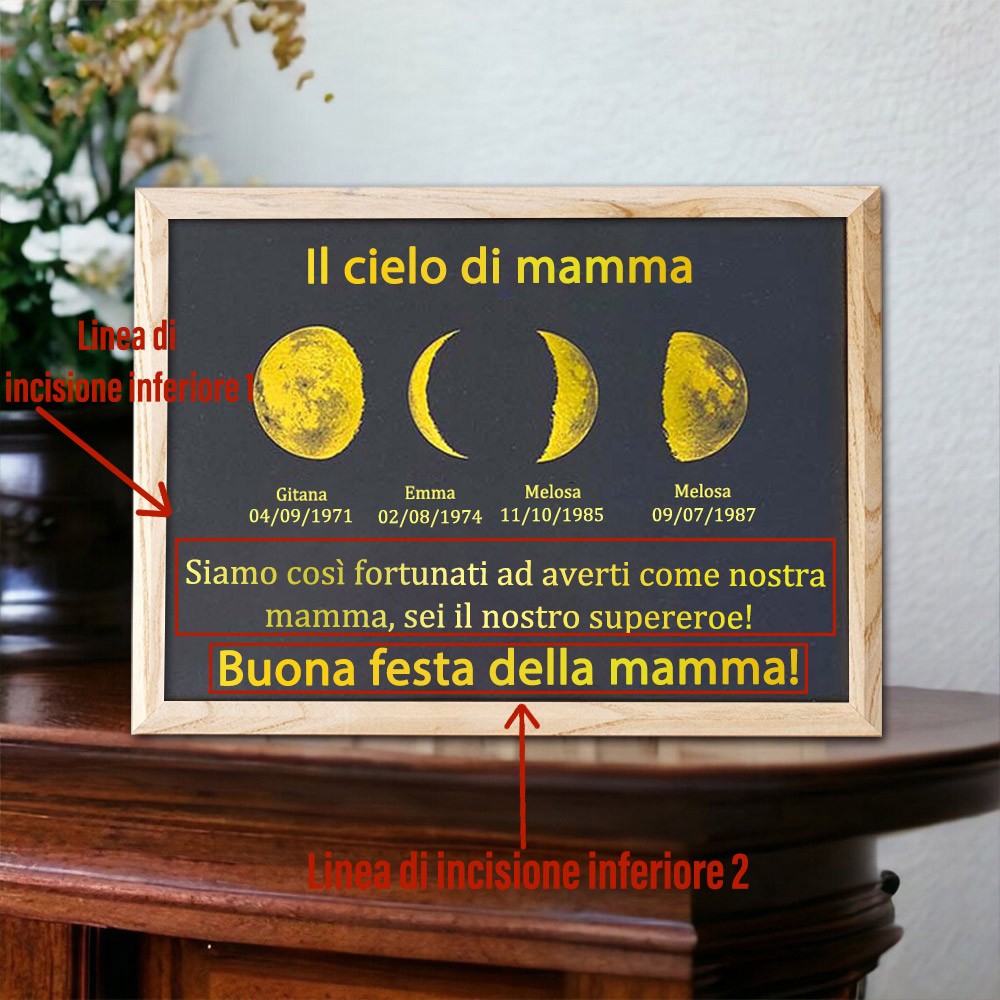 Cornice personalizzata con stampa delle fasi lunari del cielo della mamma con nomi dei bambini, regali significativi per la festa della mamma