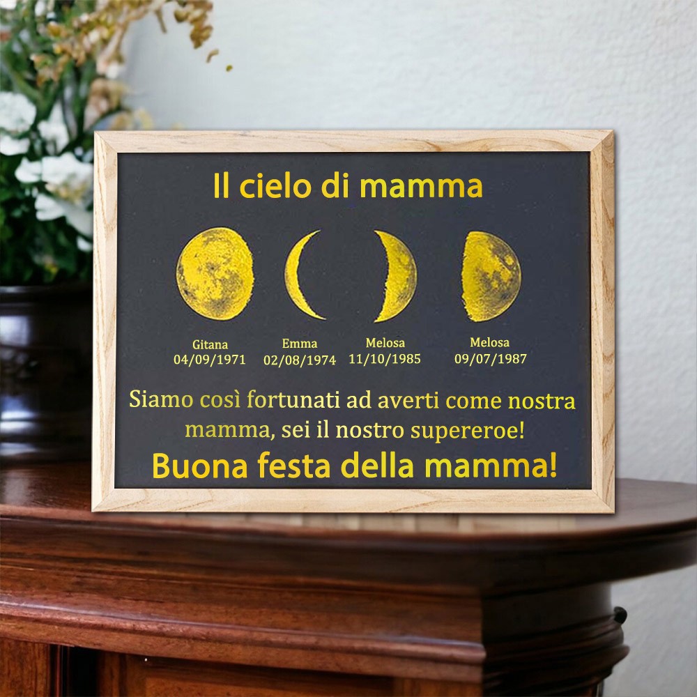 Cornice personalizzata con stampa delle fasi lunari dell'universo della mamma, regalo ricordo per la mamma, la nonna