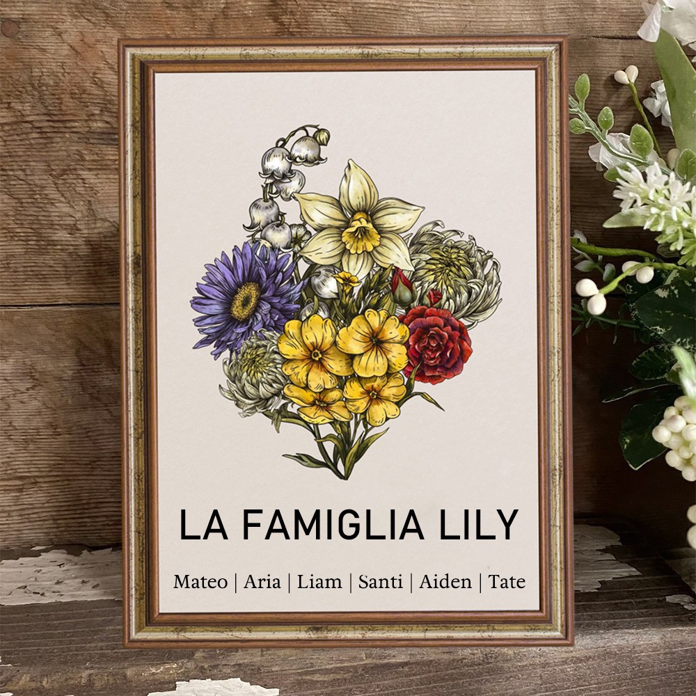 Cornice personalizzata per bouquet del mese di nascita del giardino della mamma con nomi dei bambini, regali unici per la famiglia, regalo di compleanno per mamma e nonna, regalo speciale di Natale.