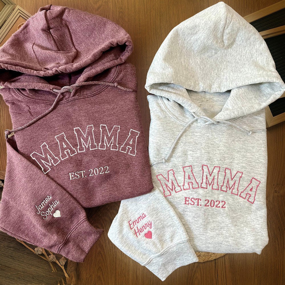 Felpa con cappuccio personalizzata con ricamo "Mamma" e data, regalo per la mamma, regalo di compleanno unico per la neomamma, regalo per la festa della mamma