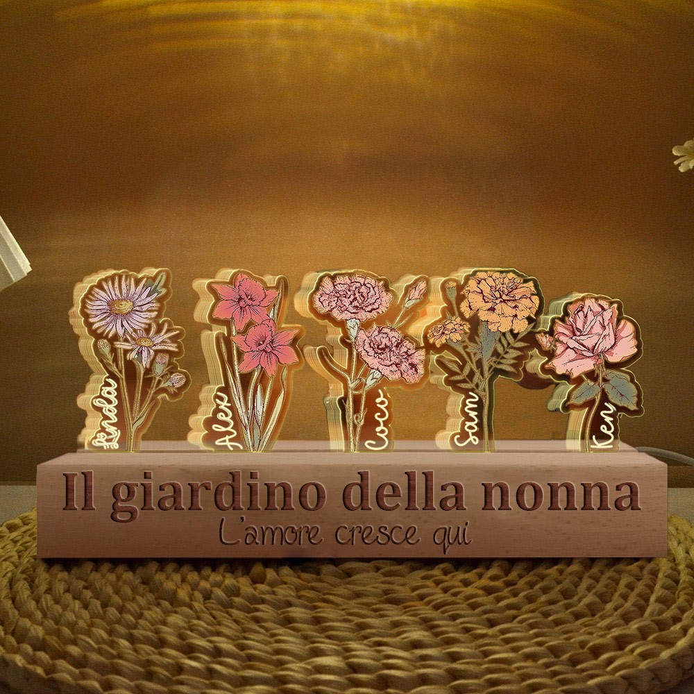 Giardino della nonna personalizzato L'amore cresce qui Fiore di nascita Luce notturna in legno Regali unici per la mamma Idee regalo per la festa della mamma