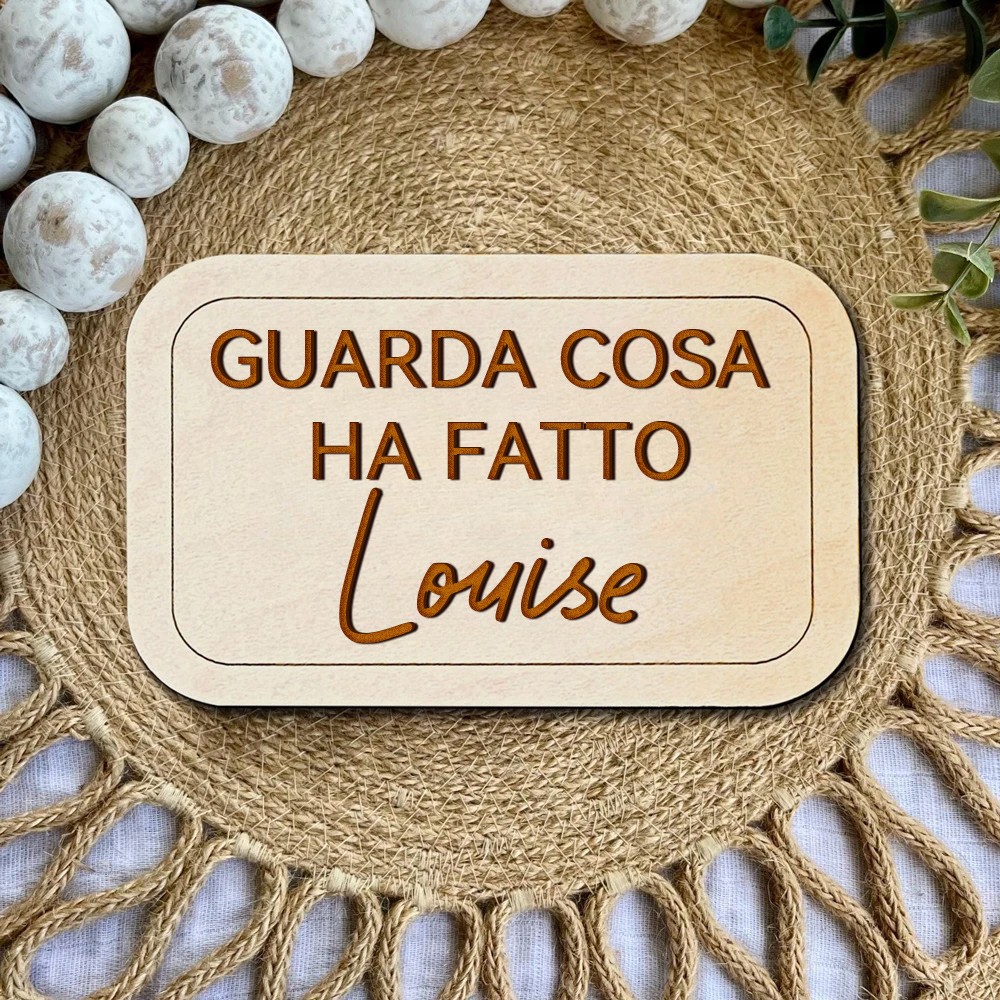 Guarda cosa ho fatto, magnete personalizzato con disegno per bambini, magnete in legno con nome personalizzato, magnete per esposizione di disegni unici per bambini, per frigorifero