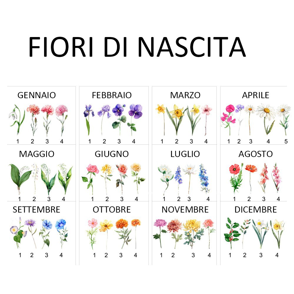 Ogni fiore simboleggia il viaggio e la crescita unici dei loro cari, formando una splendida rappresentazione dell'amore e dell'unità della vostra famiglia.