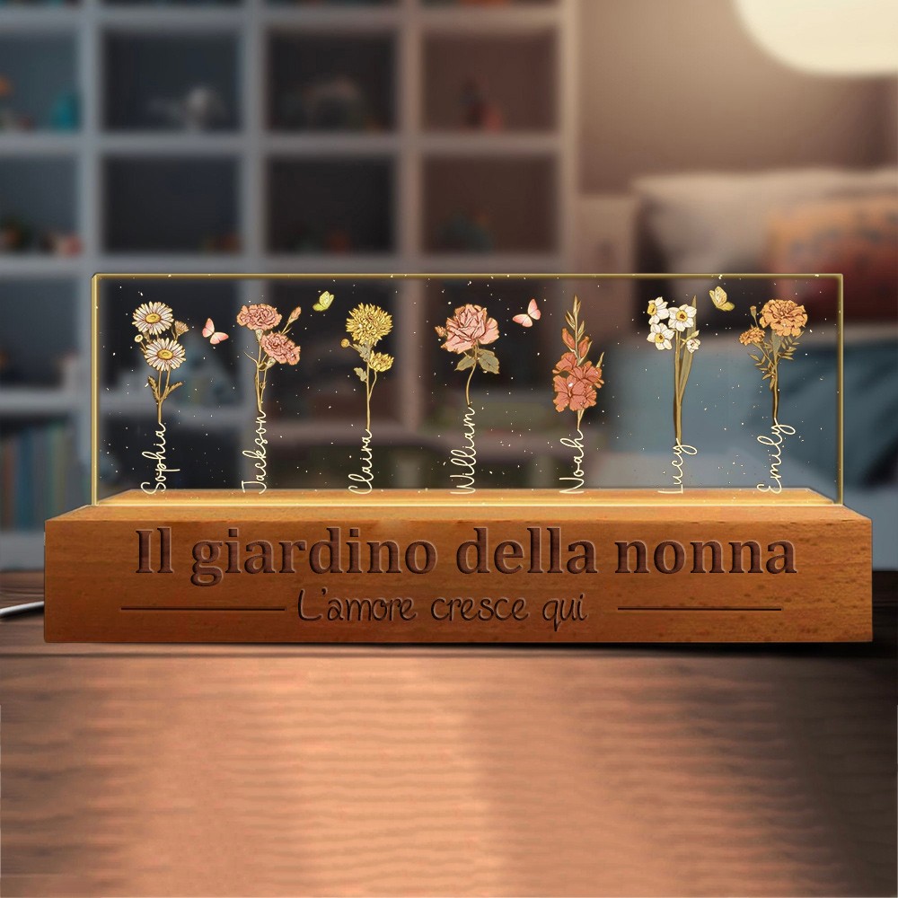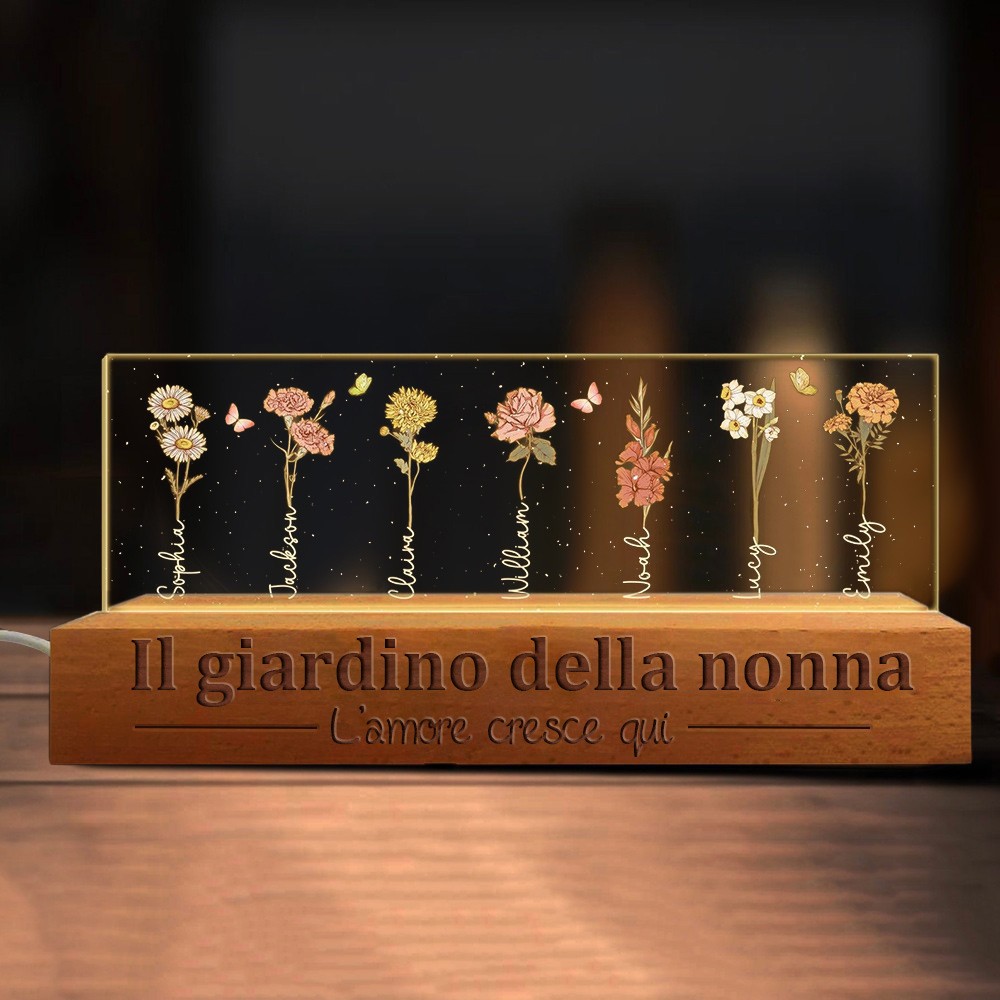 L'amore del giardino di Nana personalizzato cresce qui Fiore di nascita Luce notturna in legno Regali ricordo per la mamma Nonna Idee regalo per la festa della mamma