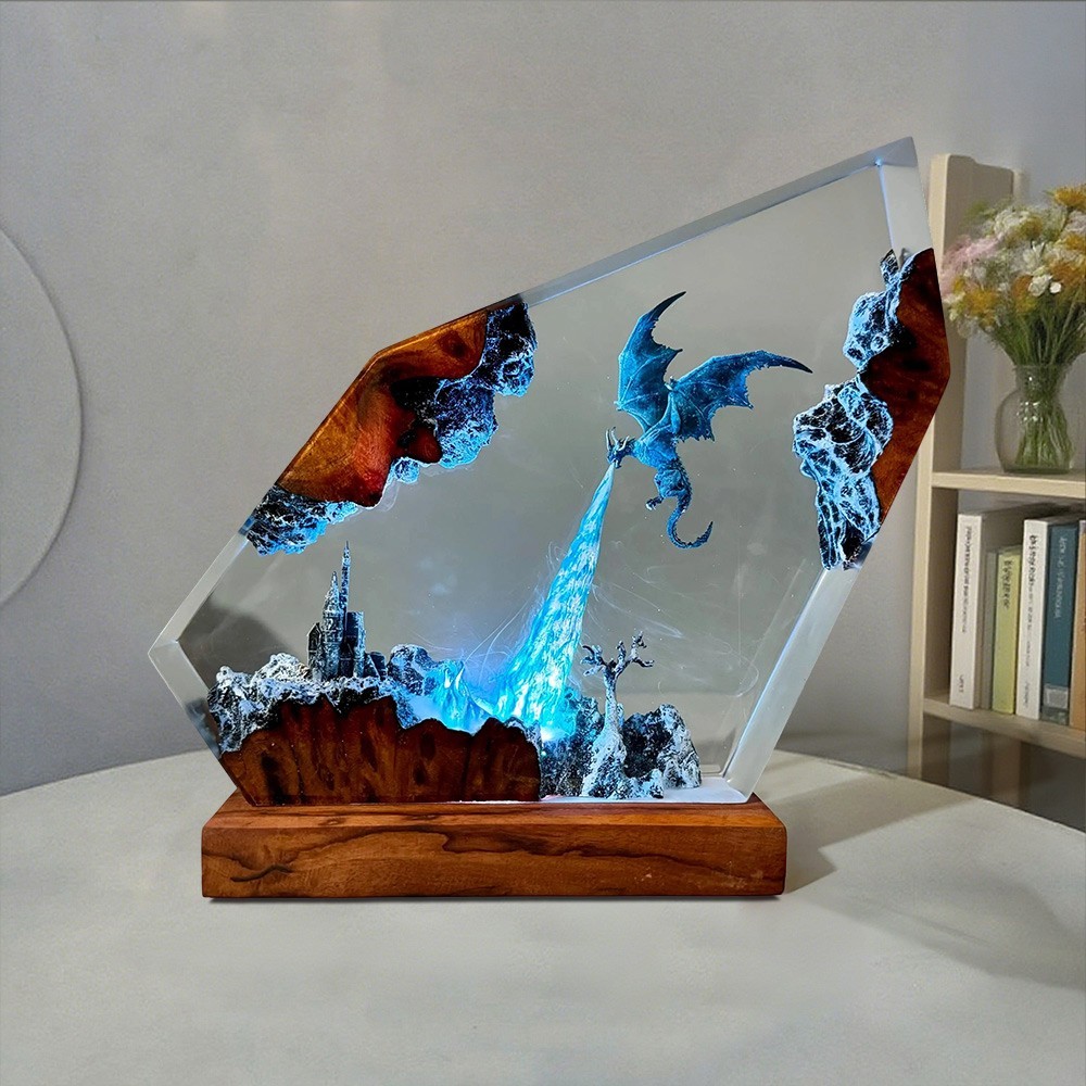 Lampada Drago di Fuoco in Resina e Legno, Regalo di Halloween per Lui, Idee Regalo di Compleanno