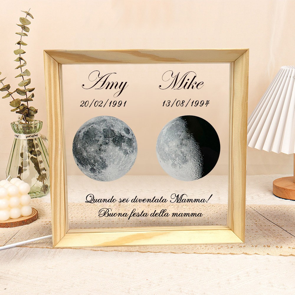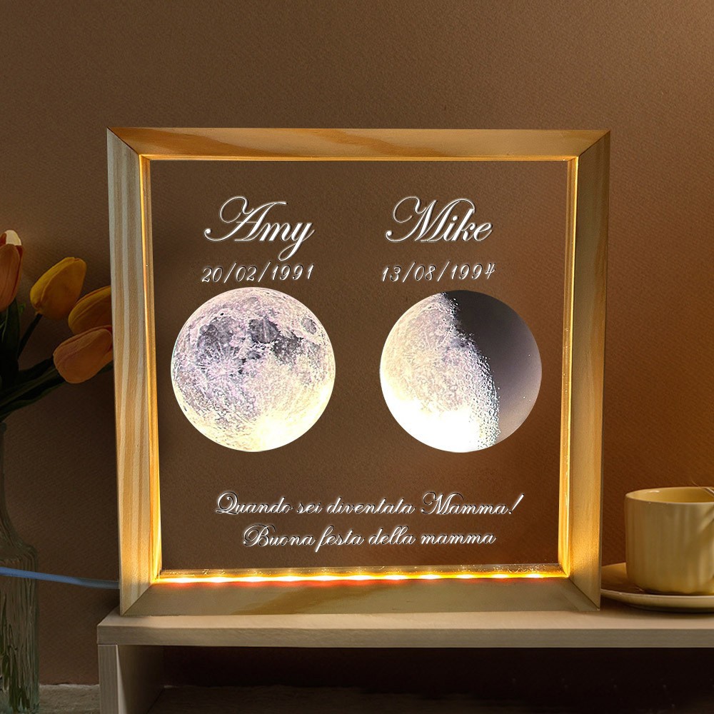 Lampada fotografica personalizzata con fasi lunari con data. Regali significativi per la mamma. Idee regalo perfette per la festa della mamma