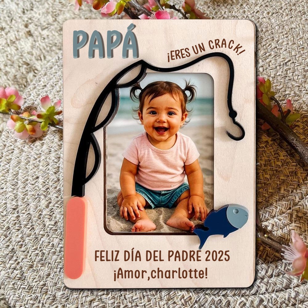 Magnete per frigorifero in legno personalizzato con foto a tema pesca, cornice magnetica personalizzata, regalo unico per papà, nonno, idee regalo per la festa del papà
