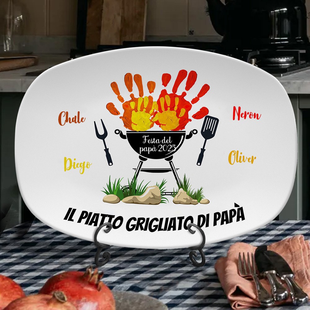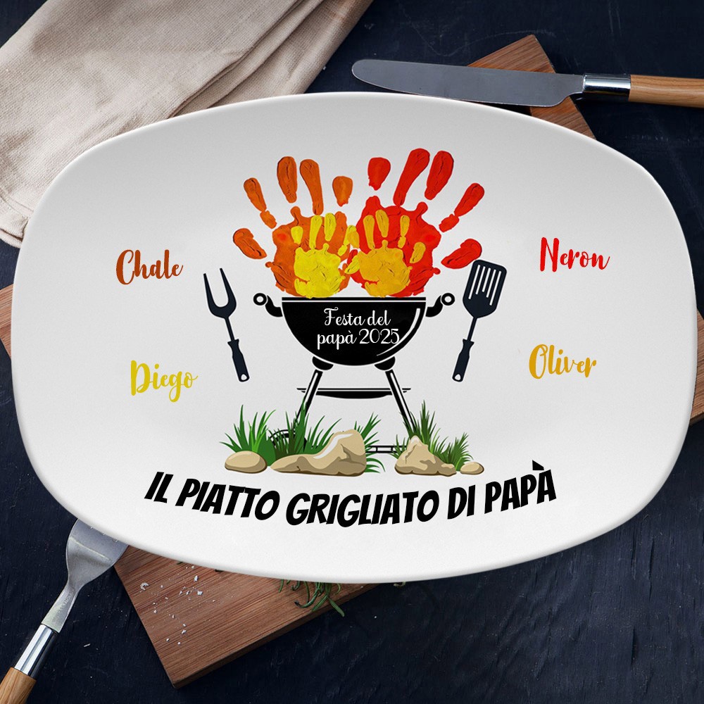 Piatto da barbecue personalizzato con impronte di mani e nomi dei bambini, regalo per la festa del papà