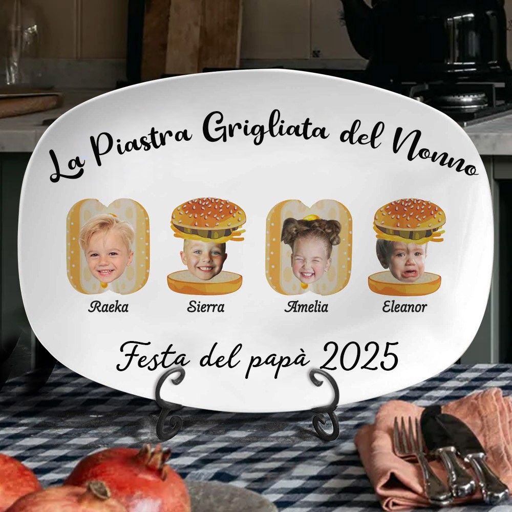Piatto da grigliata personalizzato per papà con nomi di bambini e foto, regalo unico per la festa del papà