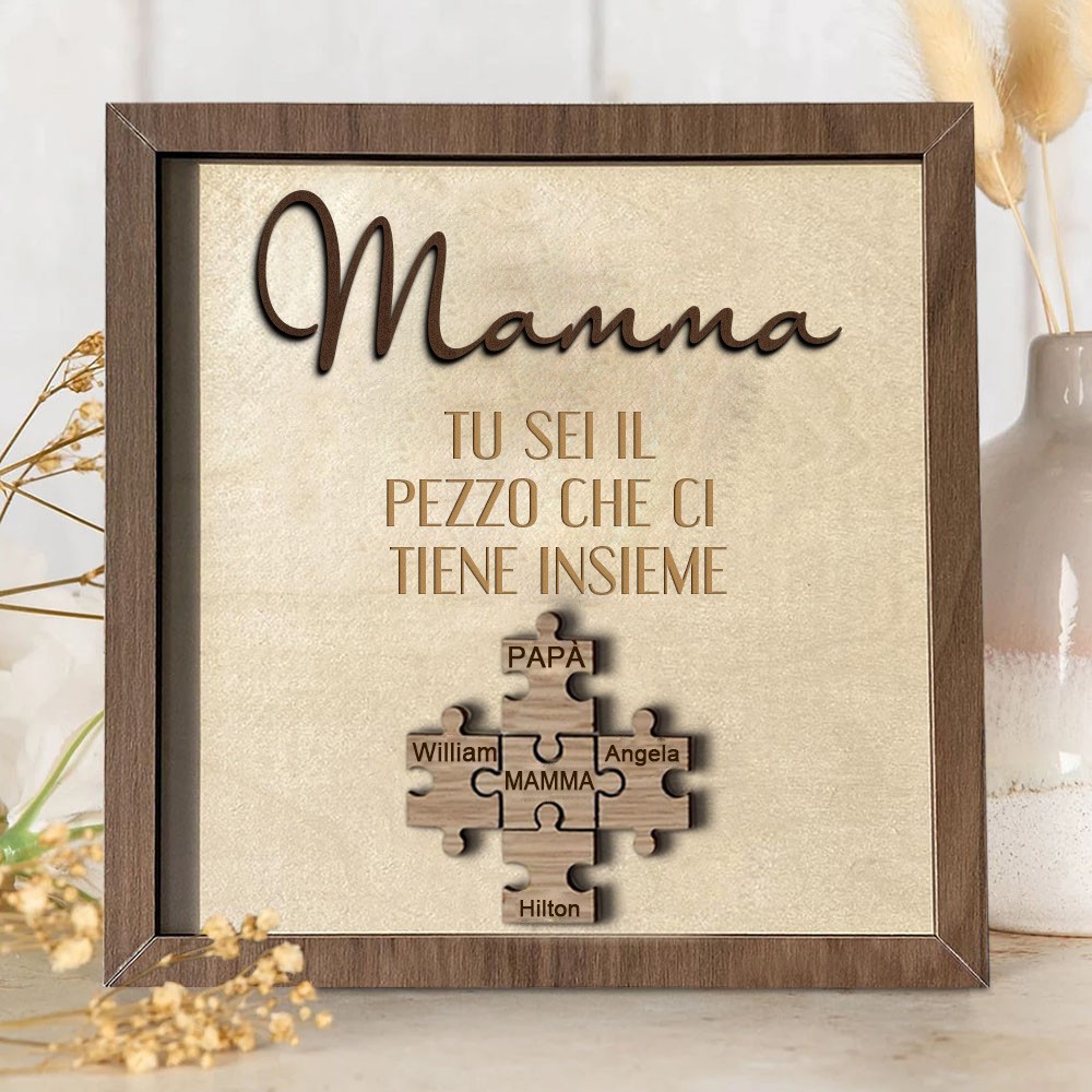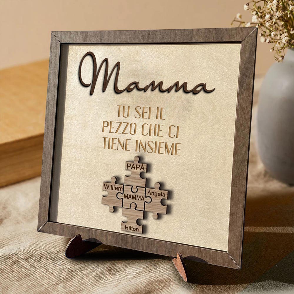 Puzzle personalizzati mamma sei il pezzo che ci tiene insieme, cartello, idee regalo per la festa della mamma, targa di famiglia, regalo per mamma e nonna
