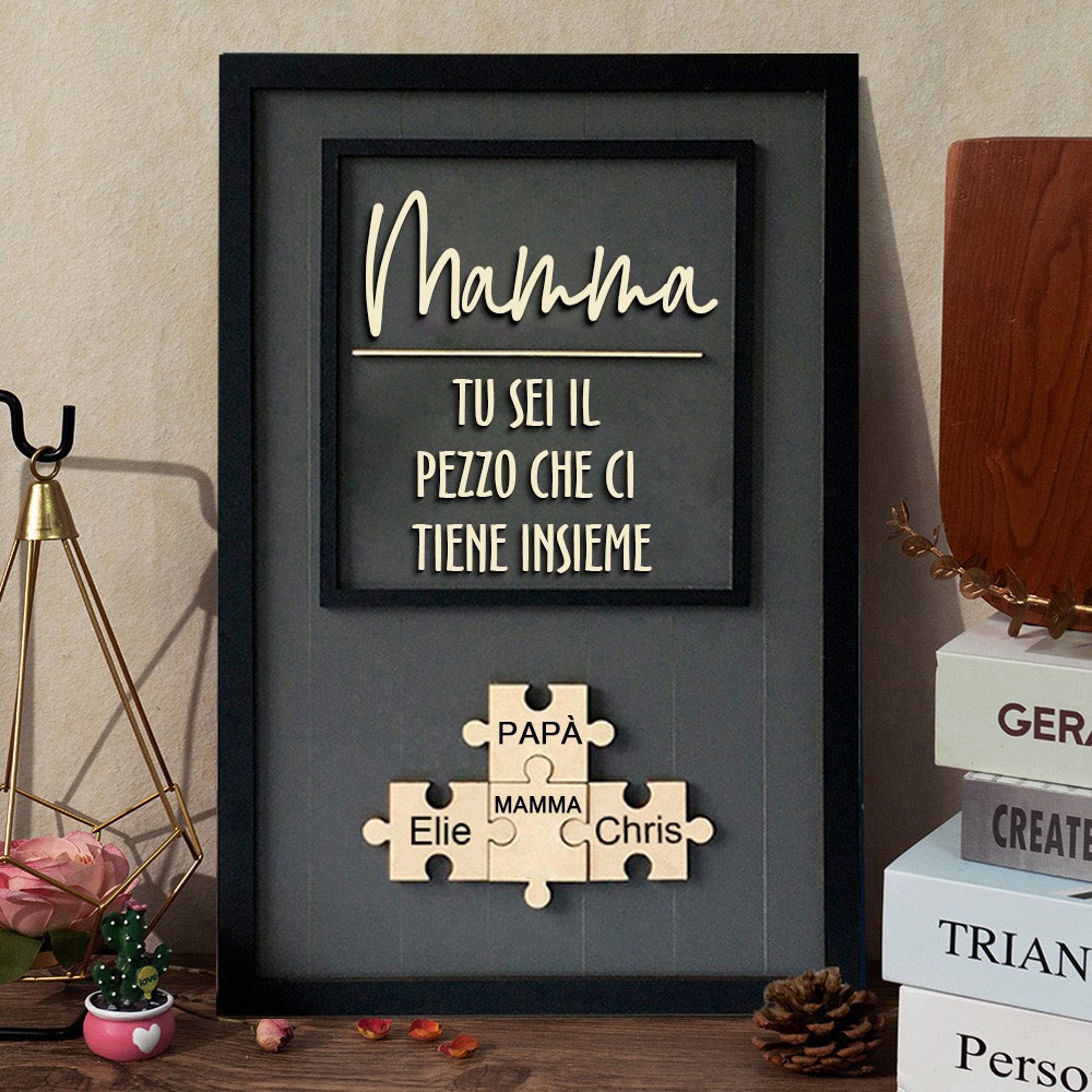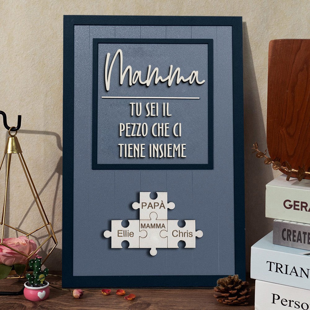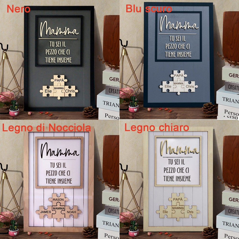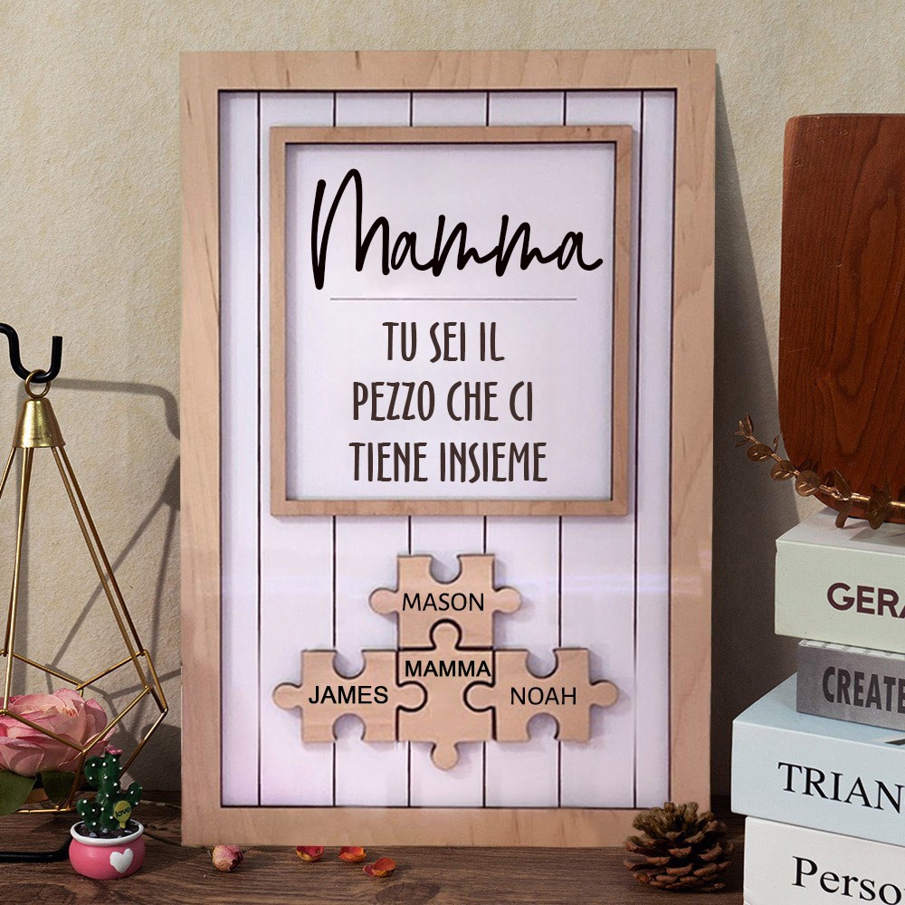 Puzzle personalizzato con il nome della mamma, tu sei il pezzo che ci tiene insieme, regalo unico per la mamma, la nonna, regali per la festa della mamma