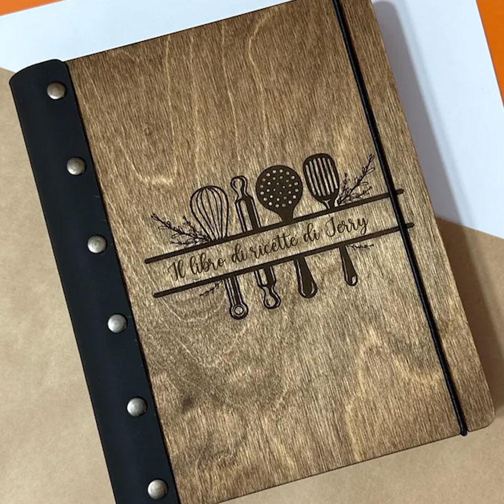 Raccoglitore di libri di ricette in legno rilegato in pelle personalizzato per la mamma, regali ricordo della famiglia, idee regalo per la festa della mamma