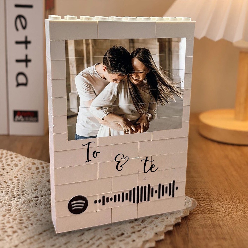 Regali di Anniversario Personalizzati con Foto a Blocchi per Canzoni di Spotify per Lei, Regali di San Valentino per Coppie.