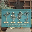 Personalizzato In Legno "Il Giardino della Nonna" Cornice con Fiori di Nascita e Nomi dei Nipotini - Regalo Unico di Compleanno per la Mamma o la Nonna, Regalo per la Festa della Mamma
