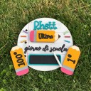 Lavagna vuota con scritta a mano personalizzata per l'ultimo giorno di scuola, con il nome del bambino, cartello per il ritorno a scuola, regalo ricordo per nuovi studenti