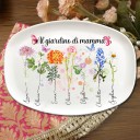 Vassoio familiare personalizzato 'Giardino della Mamma' stampato con i nomi dei bambini e i fiori di nascita. Un regalo da cucina unico per Mamma e Nonna, regalo di compleanno per una nuova mamma, idee regalo per la Festa della Mamma