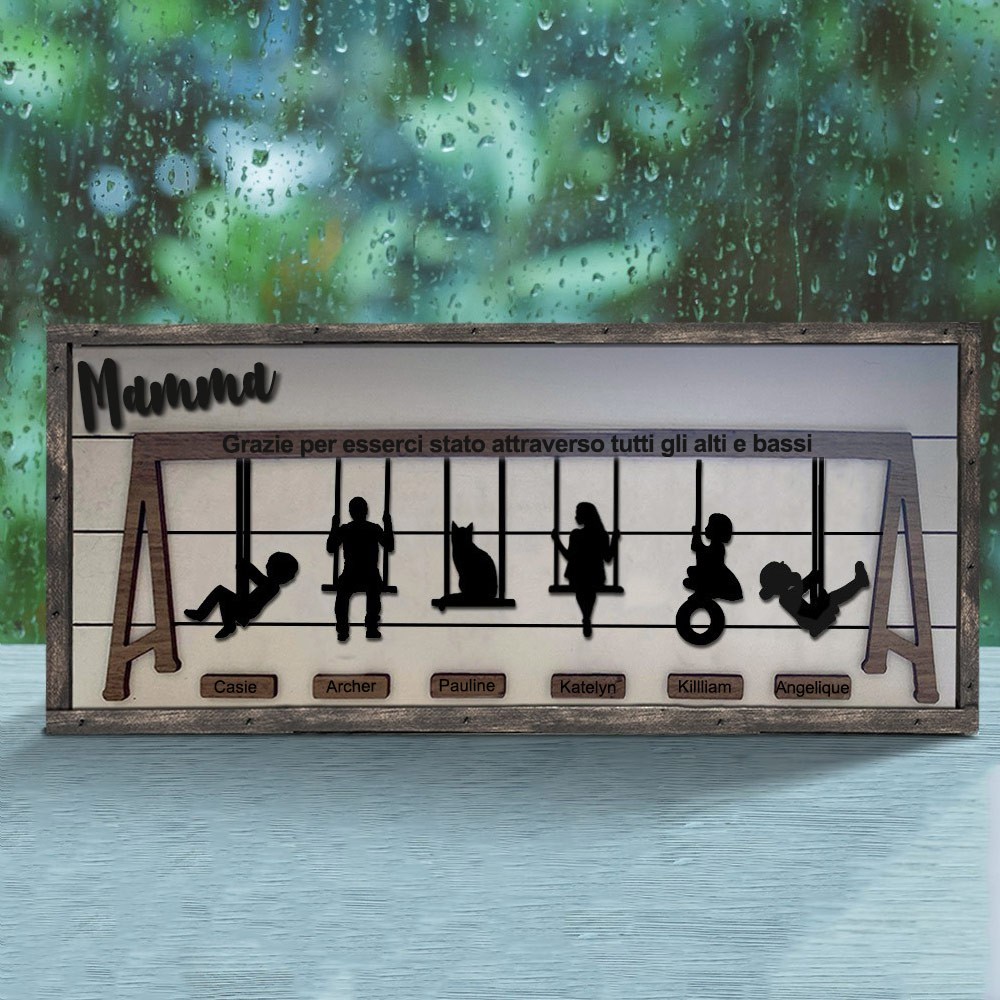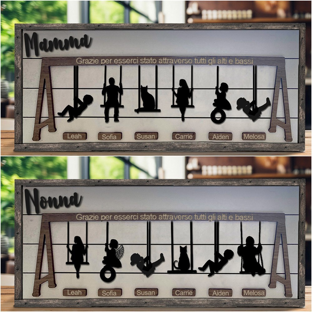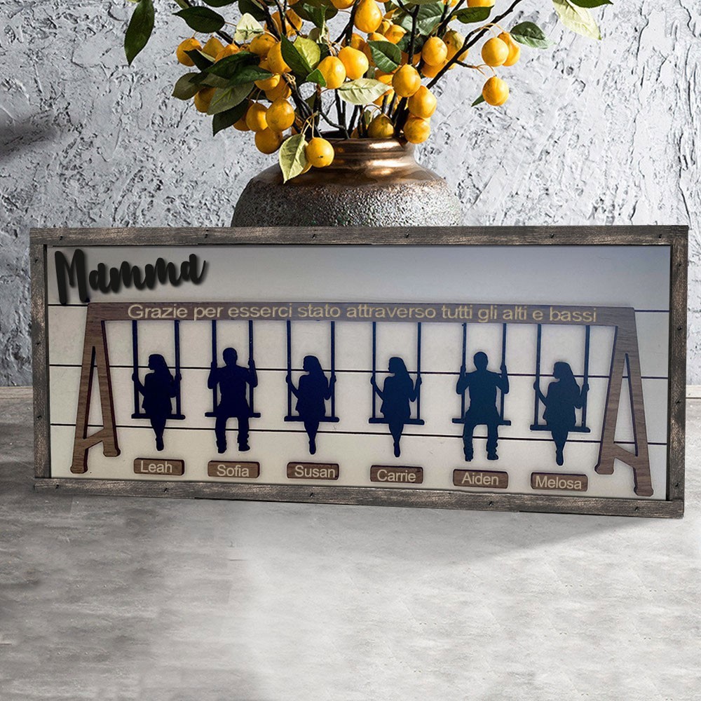 Set altalena in legno personalizzato per mamma, cartello con cornice, regalo unico per la festa della mamma, regali per la famiglia con nomi di bambini