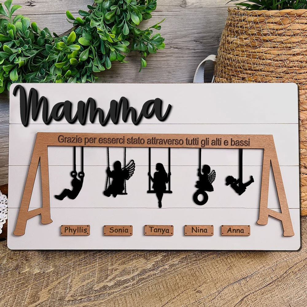 Set di altalene per mamma in legno personalizzato con insegna con nomi di bambini. Regali unici per la famiglia per mamma, nonna, idee regalo speciali per la festa della mamma