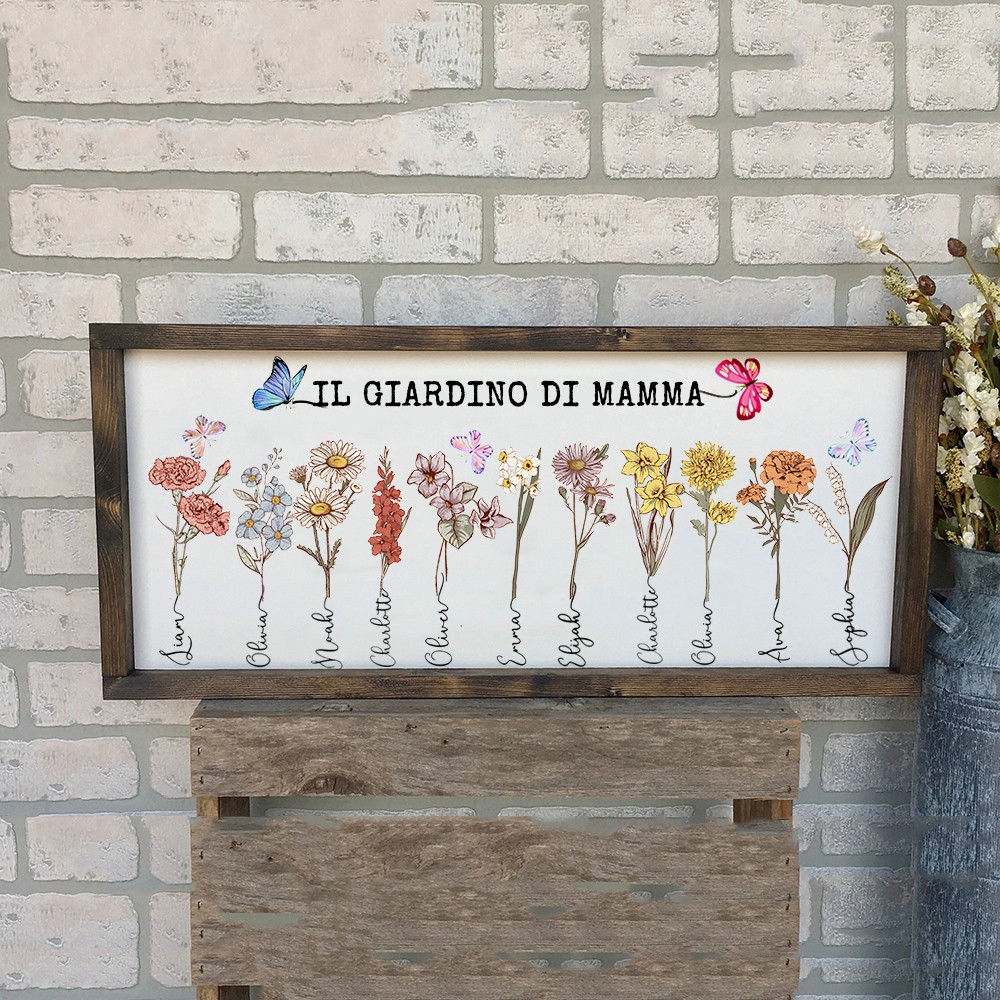 Stampa acquerello personalizzata Giardino della Nonna con Fiori di Nascita Cornice Cartello con Nomi Regalo Unico Ricordo di Famiglia per Mamma Nonna Idee Regalo Festa della Mamma