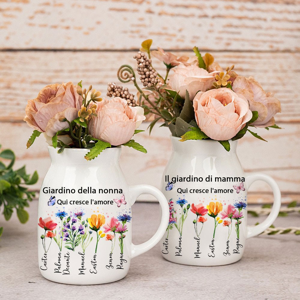 Stampa artistica personalizzata con vaso di fiori per la nascita della nonna con i nomi dei nipoti, regalo di famiglia per interni per mamma e nonna, regalo di compleanno unico, idee regalo per la festa della mamma