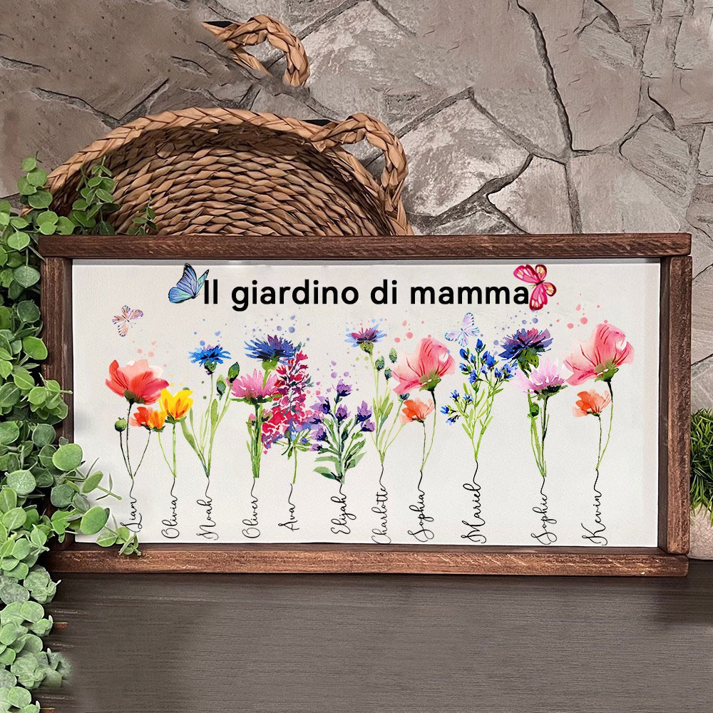 Stampa artistica personalizzata del fiore di nascita per il giardino della nonna, cornice in legno con nome della famiglia, regalo unico per la festa della mamma per mamma e nonna