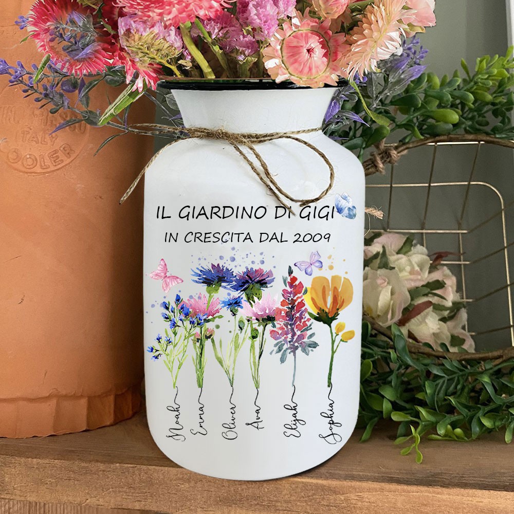Stampa artistica personalizzata "Giardino della nonna" "L'amore cresce qui", vaso di fiori di nascita con nomi di bambini, regali di compleanno unici per la mamma, regali per la festa della mamma e nonna.