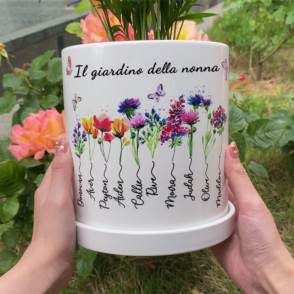 Stampa personalizzata di fiori di nascita del giardino della nonna, vaso per piante da interno con nomi dei nipoti, regali di compleanno unici per la nonna, decorazioni per la famiglia, regalo per la mamma, idee regalo per la festa della mamma