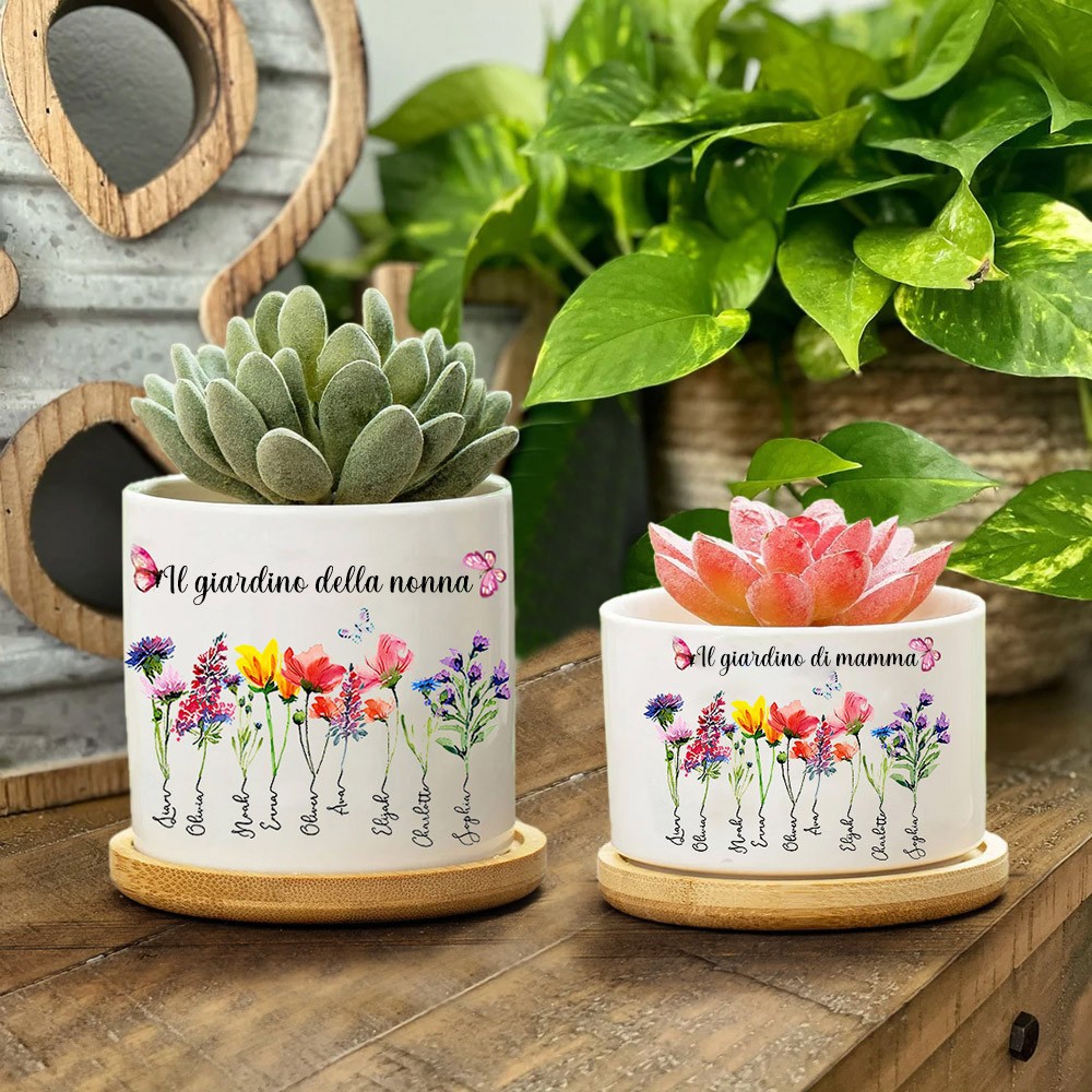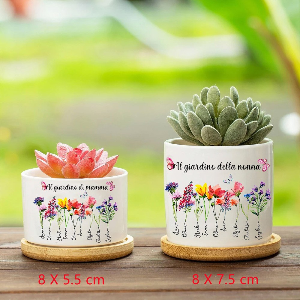 Stampa personalizzata di fiori di nascita, mini vaso per piante da giardino della nonna con nomi dei nipoti, regalo di famiglia unico per la nonna, regalo di compleanno, idee regalo per la festa della mamma