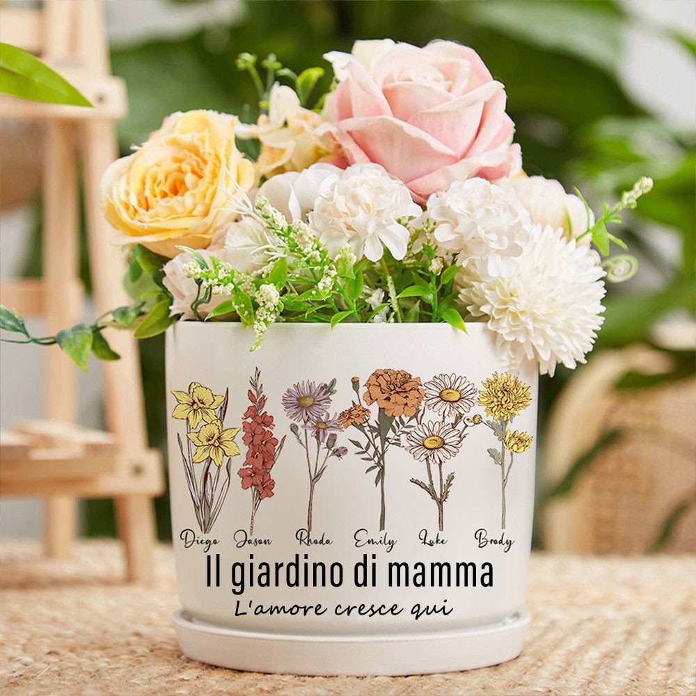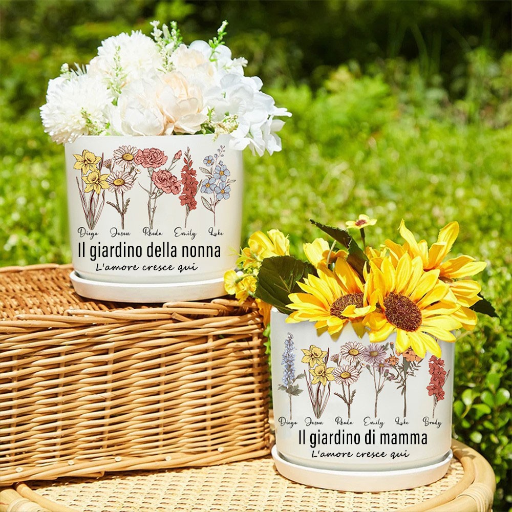 Stampa personalizzata di fiori per la nascita della mamma, vaso per piante da giardino con nome del bambino, regalo ricordo di famiglia per neomamma, nonna, regalo di compleanno unico per la mamma, idee regalo per la festa della mamma