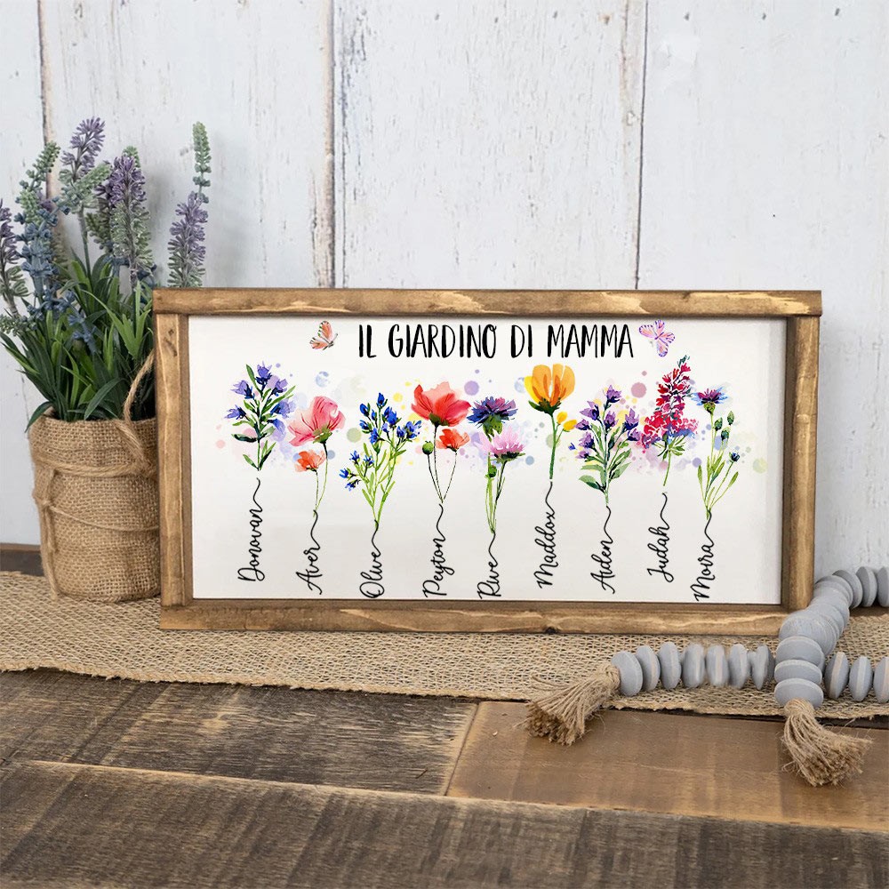 Targa di famiglia in legno con stampa floreale del mese di nascita del giardino delle mamme personalizzato con i nomi dei bambini, regali ricordo di compleanno per mamma e nonna, idee regalo uniche per la festa della mamma