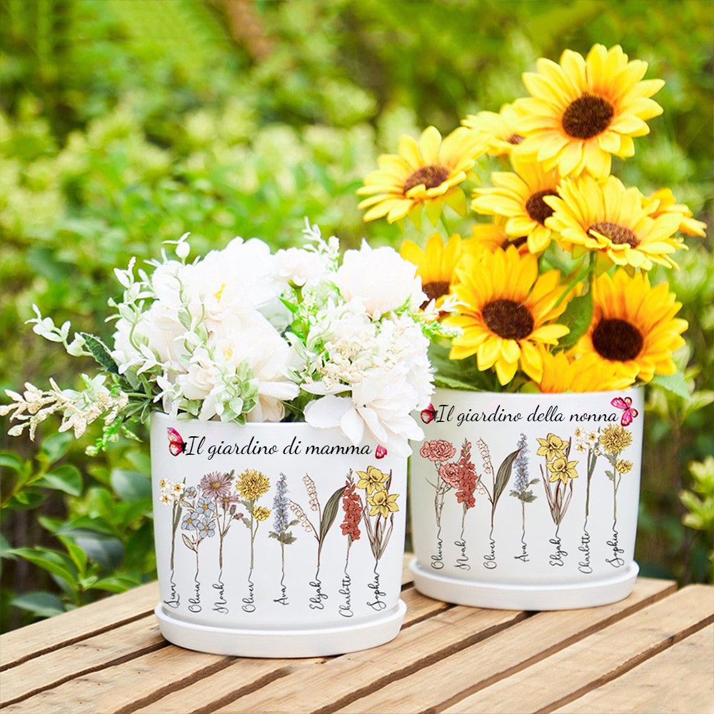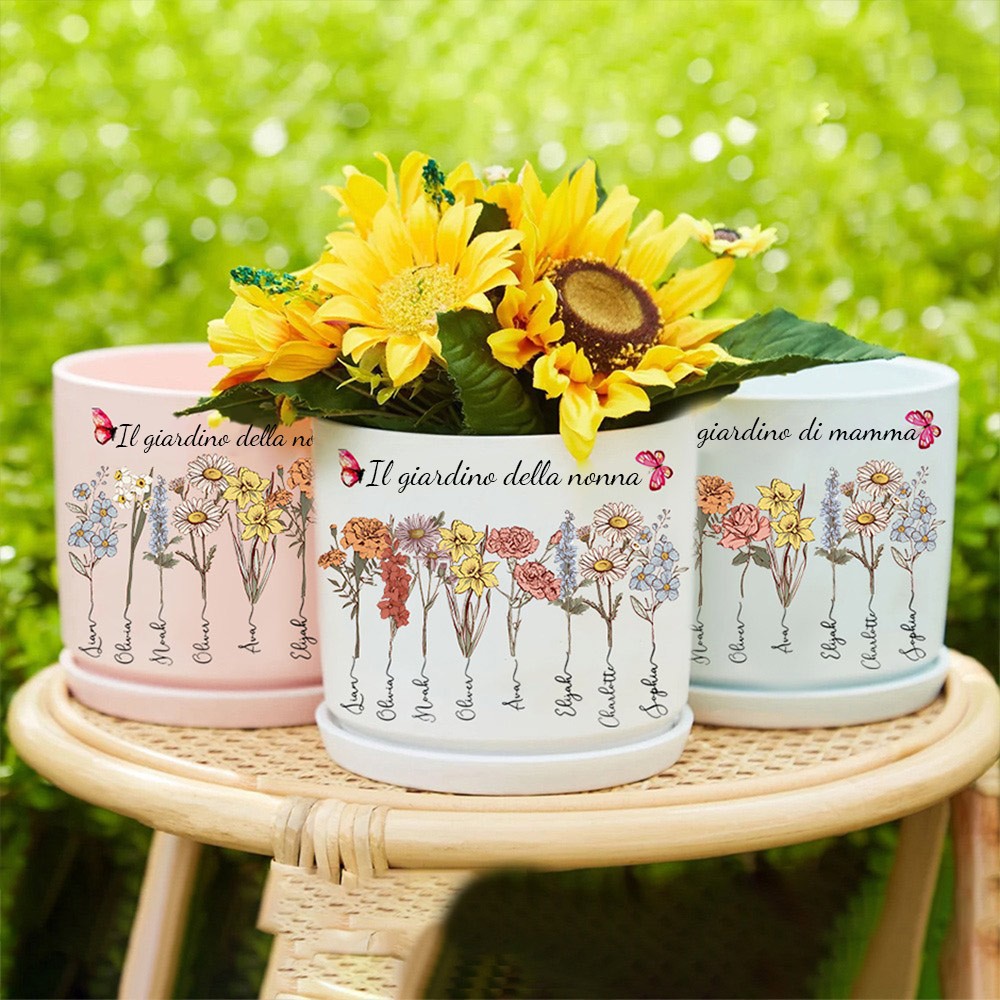Vaso da giardino personalizzato per mamma, vaso per fiori, fiori, piante, con nomi, regali per la festa della mamma, regalo di cuore per la mamma, la nonna