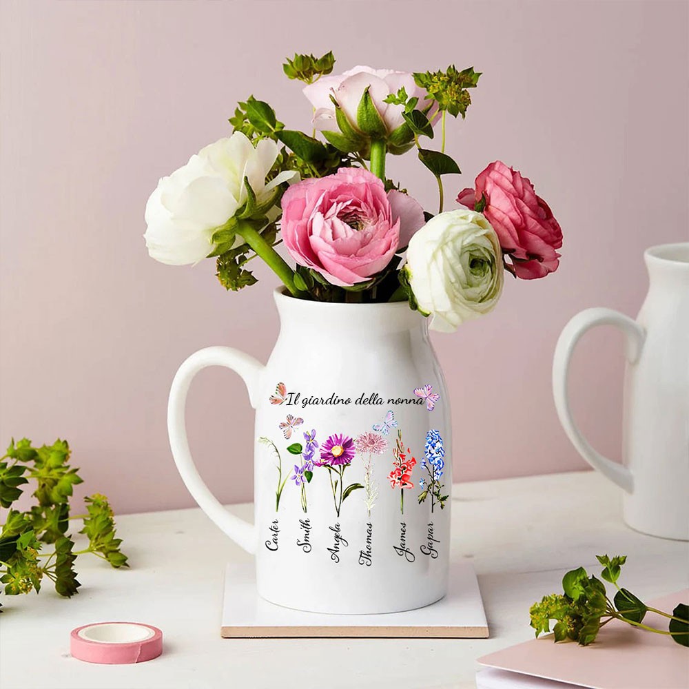 Vaso di fiori personalizzato per la nascita del giardino della nonna con nomi Regali per la festa della mamma Regalo unico per la mamma Regalo di famiglia per la nonna