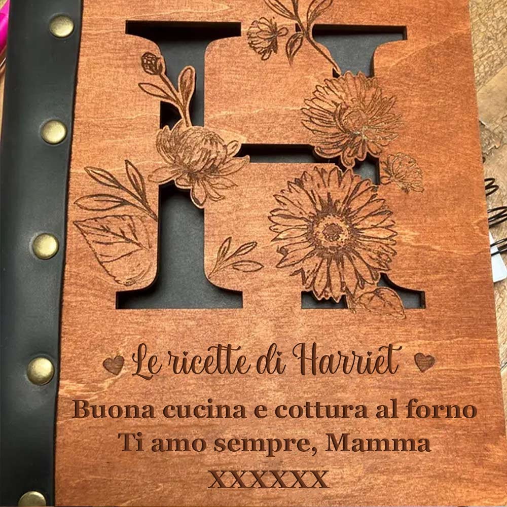 Quaderno con copertina in legno, libro di ricette con rilegatura in pelle personalizzato, per idee regalo per la festa della mamma della mamma