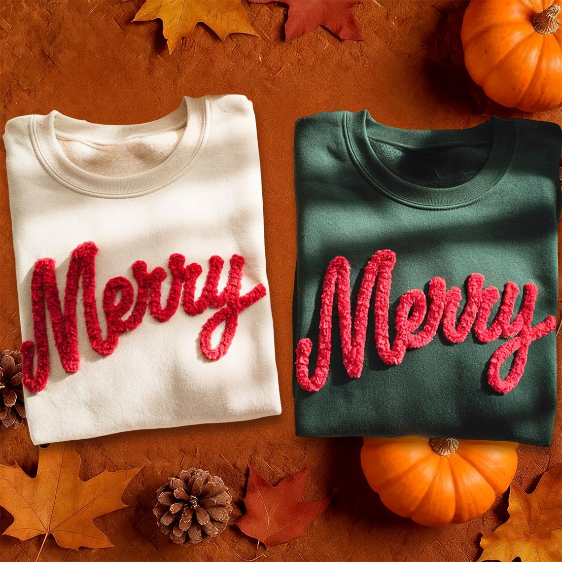 Merry Christmas Chenille Yarn Embroidered Sweatshirt Unique Christmas Gift Ideas