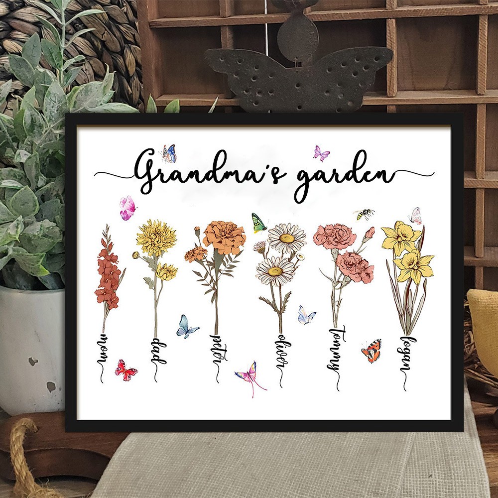 Mom's Garden Birth Month Flower Frame with Names Custom Unique Gifts for Grandma Mom Mother's Day Gift Ideas