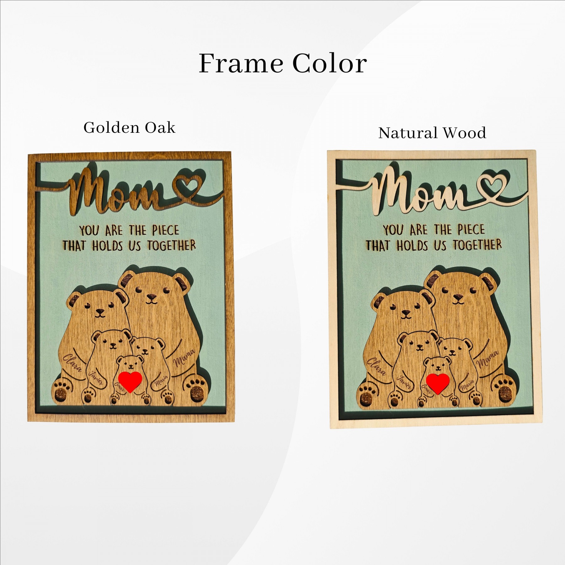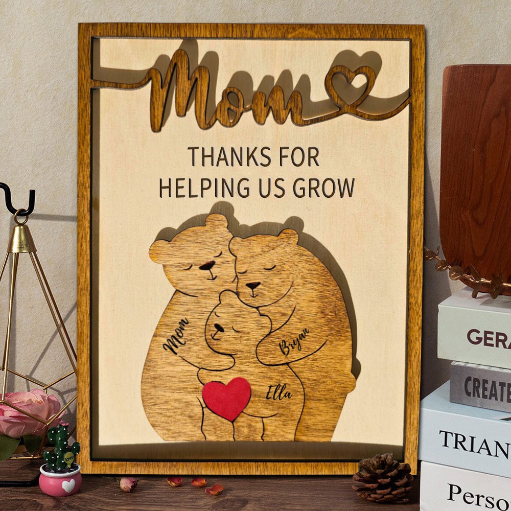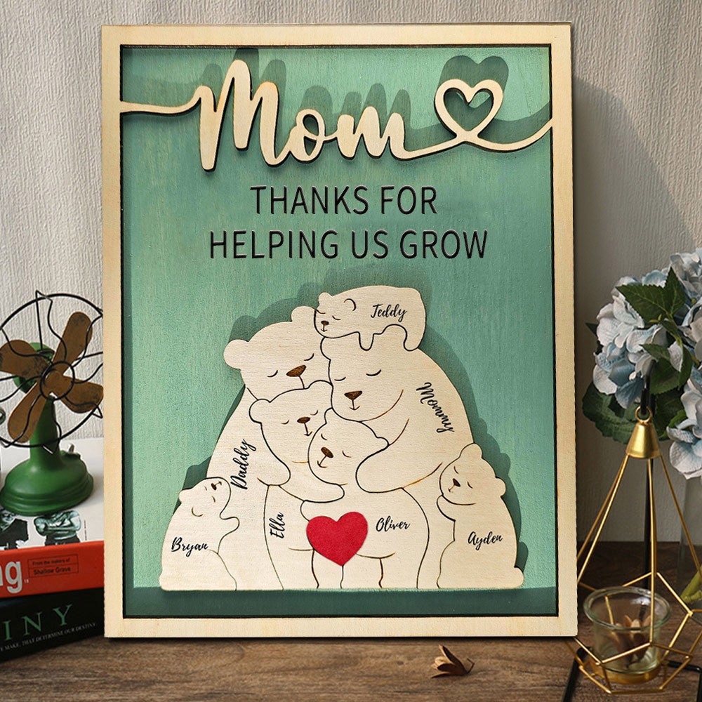 Mom Thanks For Helping Us Grow Personalized Wooden Bear Family Puzzle Sign with Kids Names for Mom Unique Mother's Day Gifts