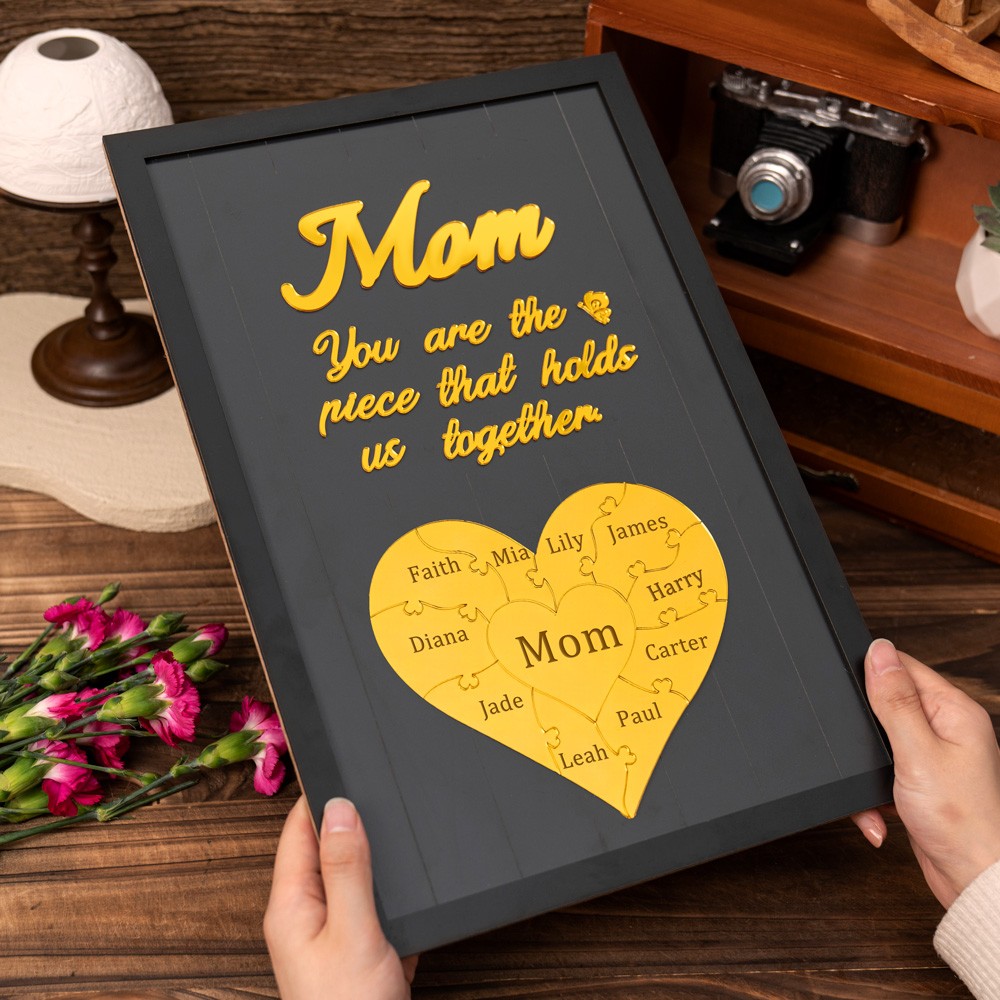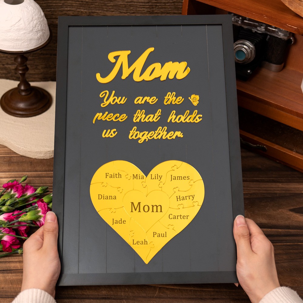 Mom You Are The Piece That Holds Us Together Personalized Mom Puzzle Sign Gift for Mom Grandma Mother's Day Gifts