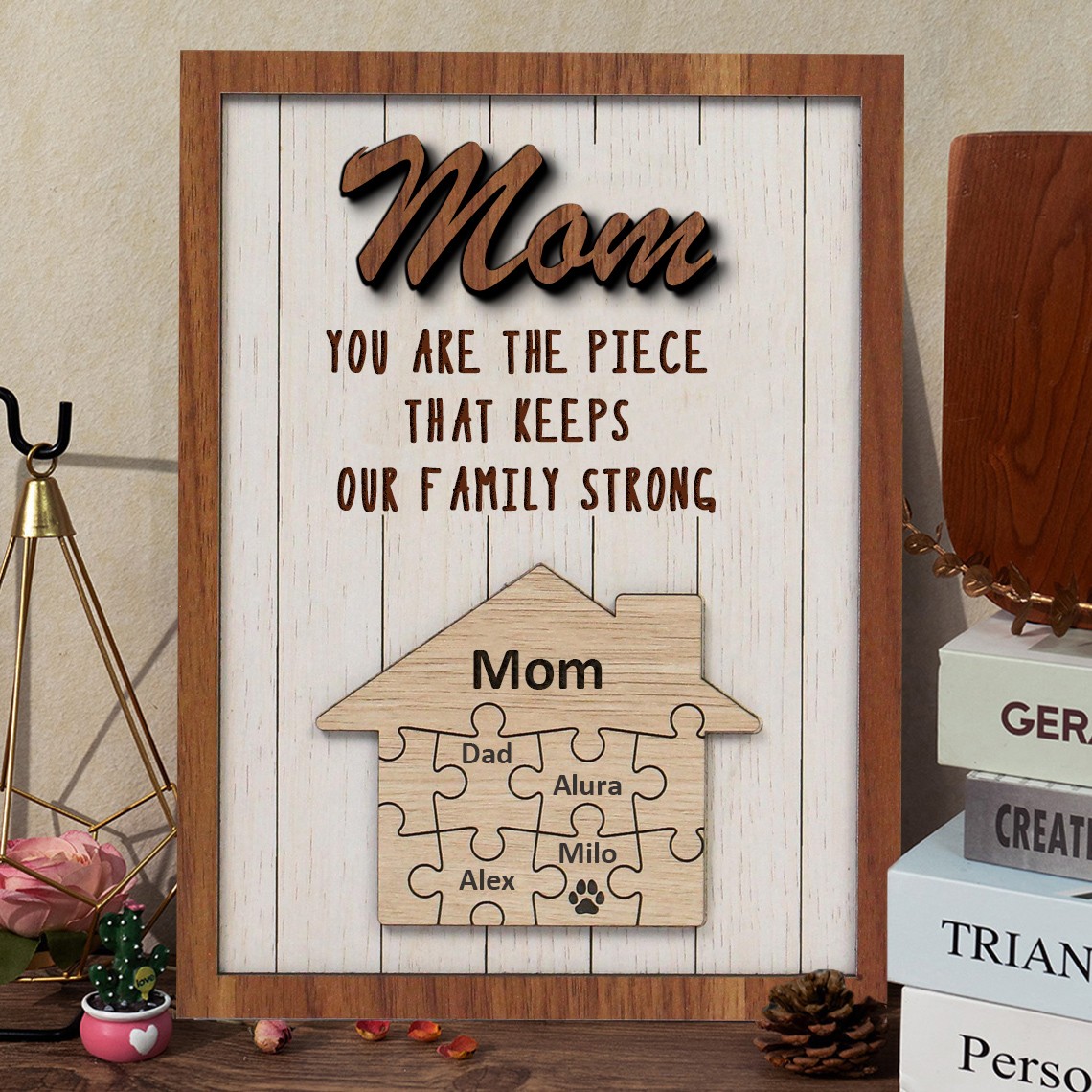 Mom You Are The Piece That Keeps Our Family Strong Personalized Mom Puzzle Sign Gift for Mom Grandma Mother's Day Gifts