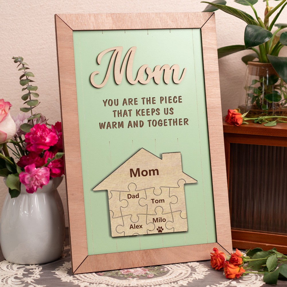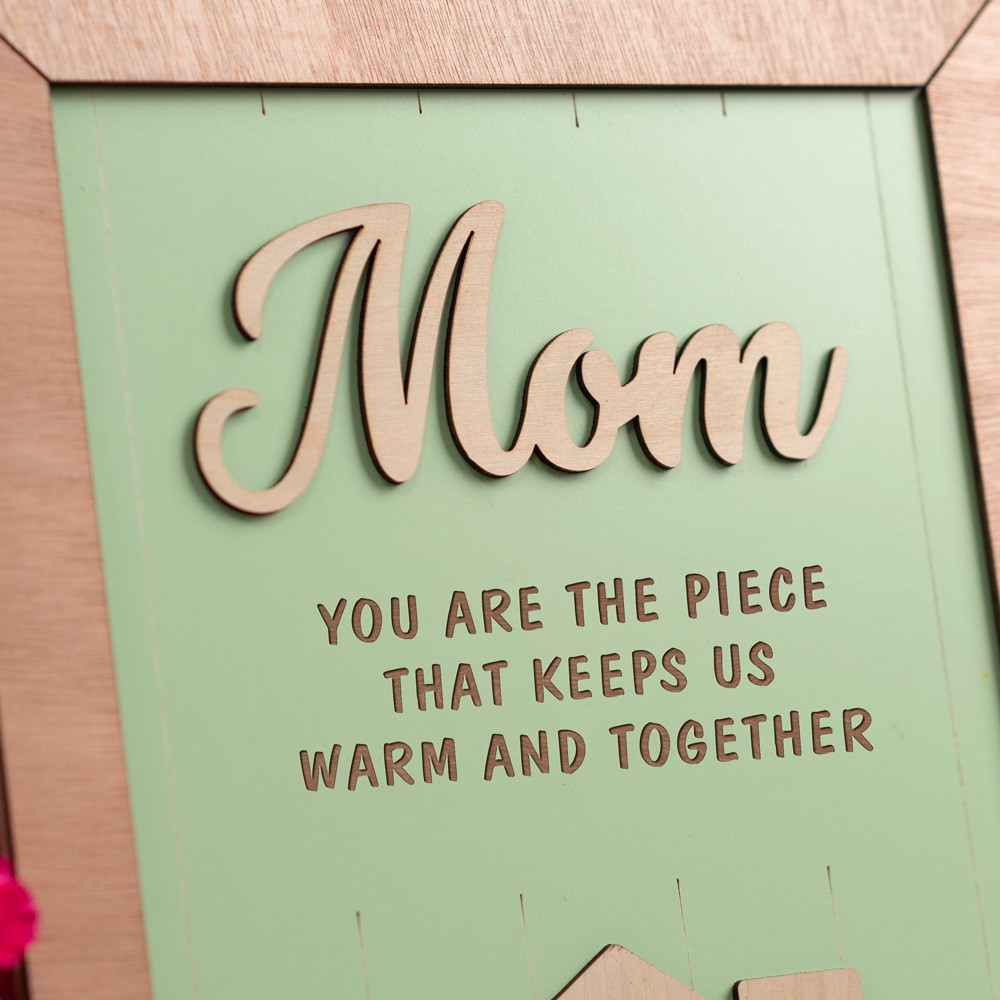 Mom You Are The Piece That Keeps Us Warm And Together Personalized Wood Puzzle Sign Gift for Mom Grandma Mother's Day Gifts