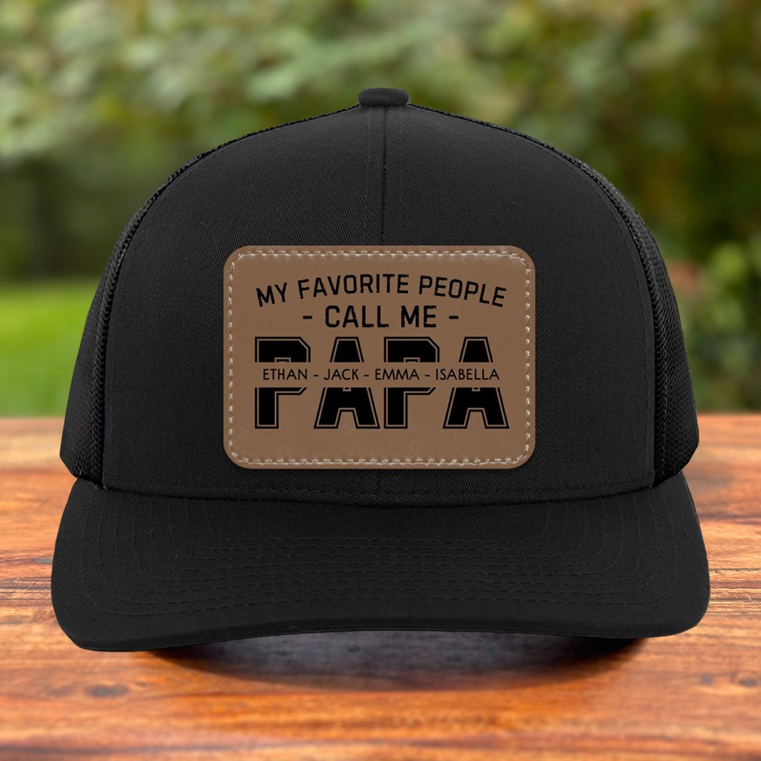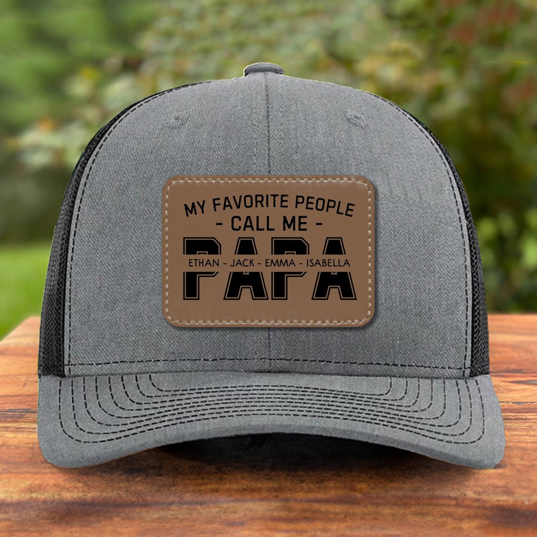 My Favorite People Call Me PAPA Hat Personalized Papa Leather Patch Hat for Father's Day Gift Unique Gifts for Grandpa Dad