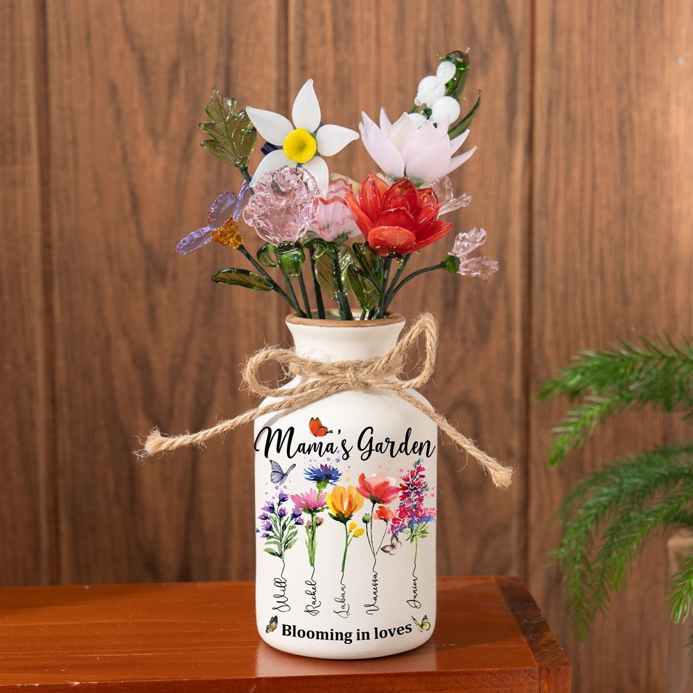 Nana's Garden Birth Month Flower Vase with Kids Names Custom Gifts for Grandma Mom Mother's Day Gift Ideas