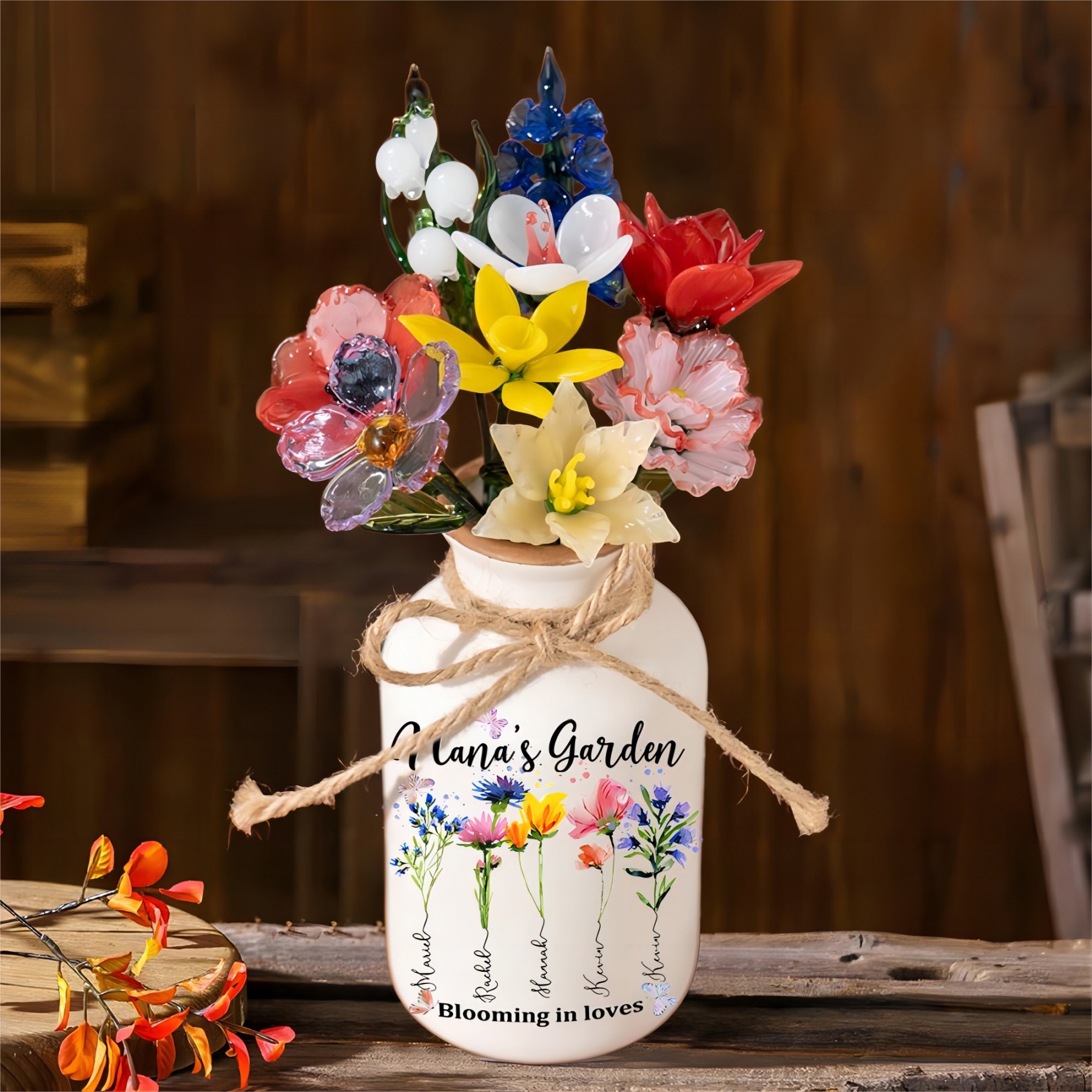 Nana's Garden Birth Month Flower Vase with Kids Names Custom Gifts for Mom Grandma New Mom Gift Mother's Day Gift