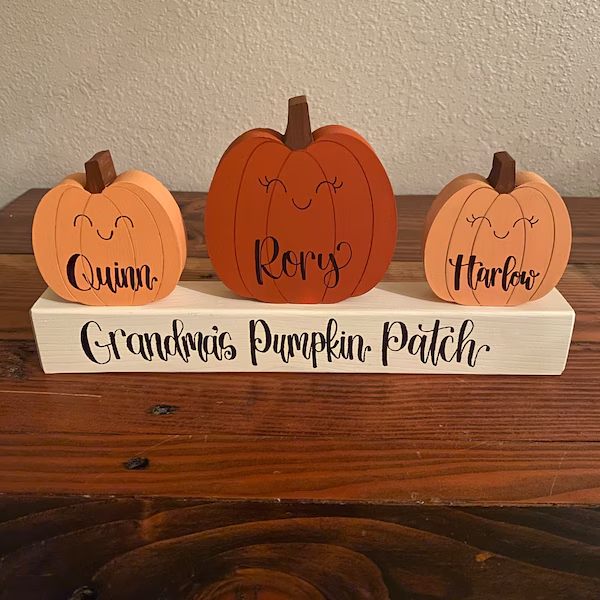 Nana's Pumpkin Patch Personalized Pumpkin Family Block with Kids Names Custom Halloween Gift Ideas
