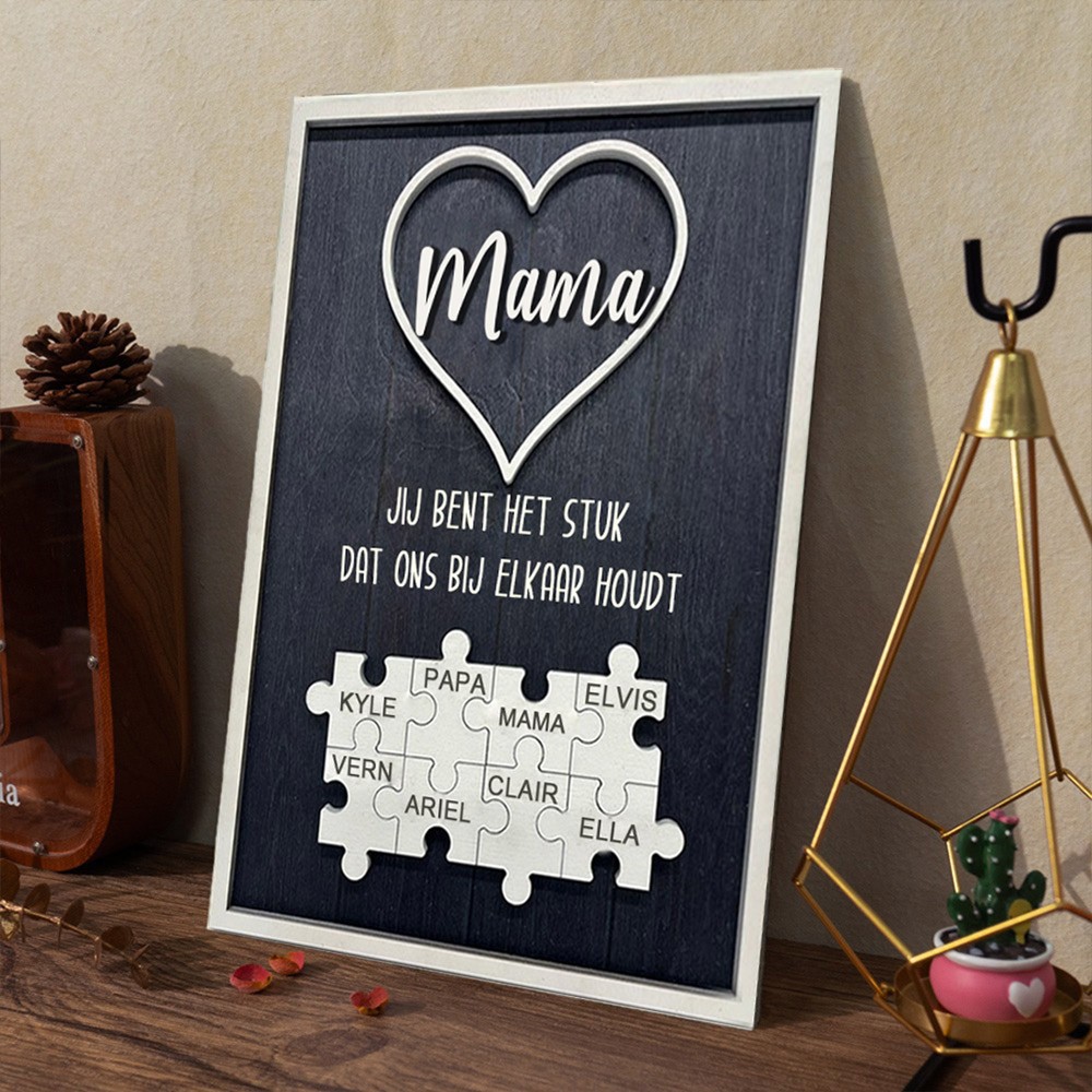 Aangepaste puzzelstukjes voor moeders, familieplaquette met namen, stuk dat ons bij elkaar houdt, uniek cadeau voor moeder, oma, ideeën voor Moederdagcadeaus
