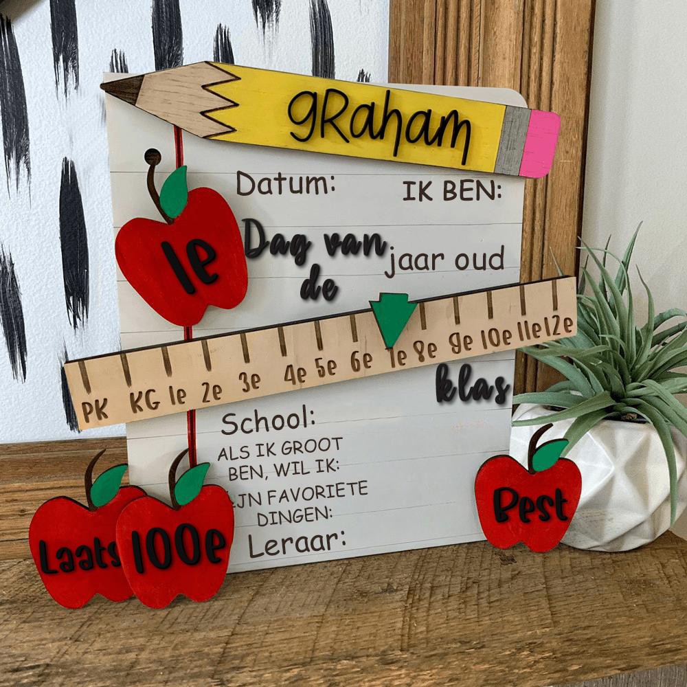 Aangepaste, verwisselbare houten borden voor de start van het schooljaar, eerste/honderdste/laatste schooldag, foto-accessoire, cadeaus voor kinderen