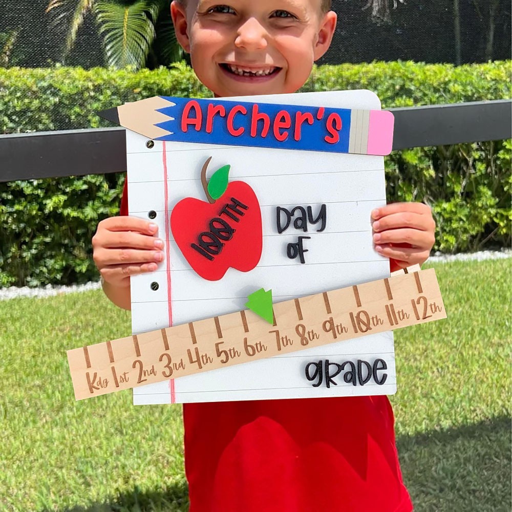 Aangepast bord voor terug naar school, herbruikbaar houten schoolbord, mijlpaal, gepersonaliseerde cadeaus voor kinderen